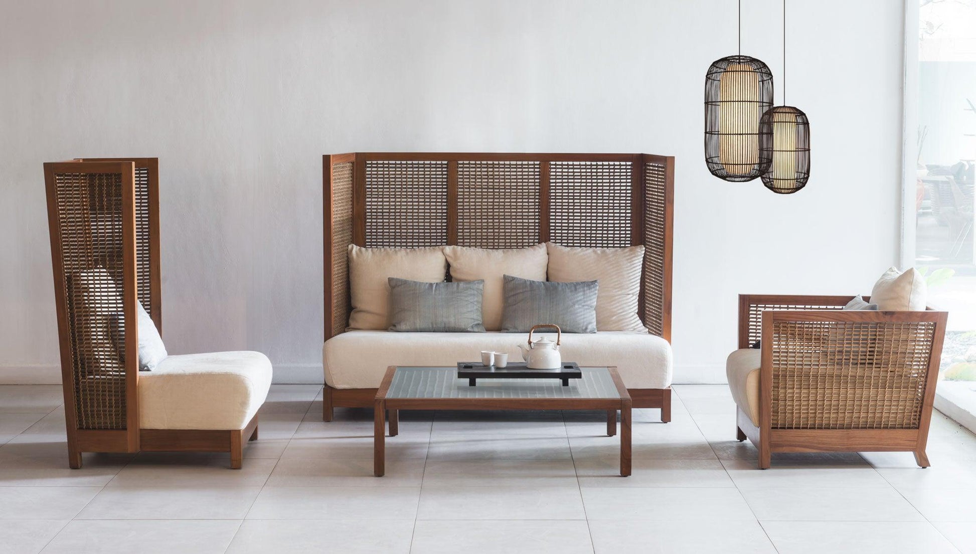 La collezione Suzy Wong si ispira agli alti e romantici paraventi delle tradizionali case orientali. I pannelli intrecciati creano un senso di intimità, ideale per chiacchierare sorseggiando un caffè o un tè.