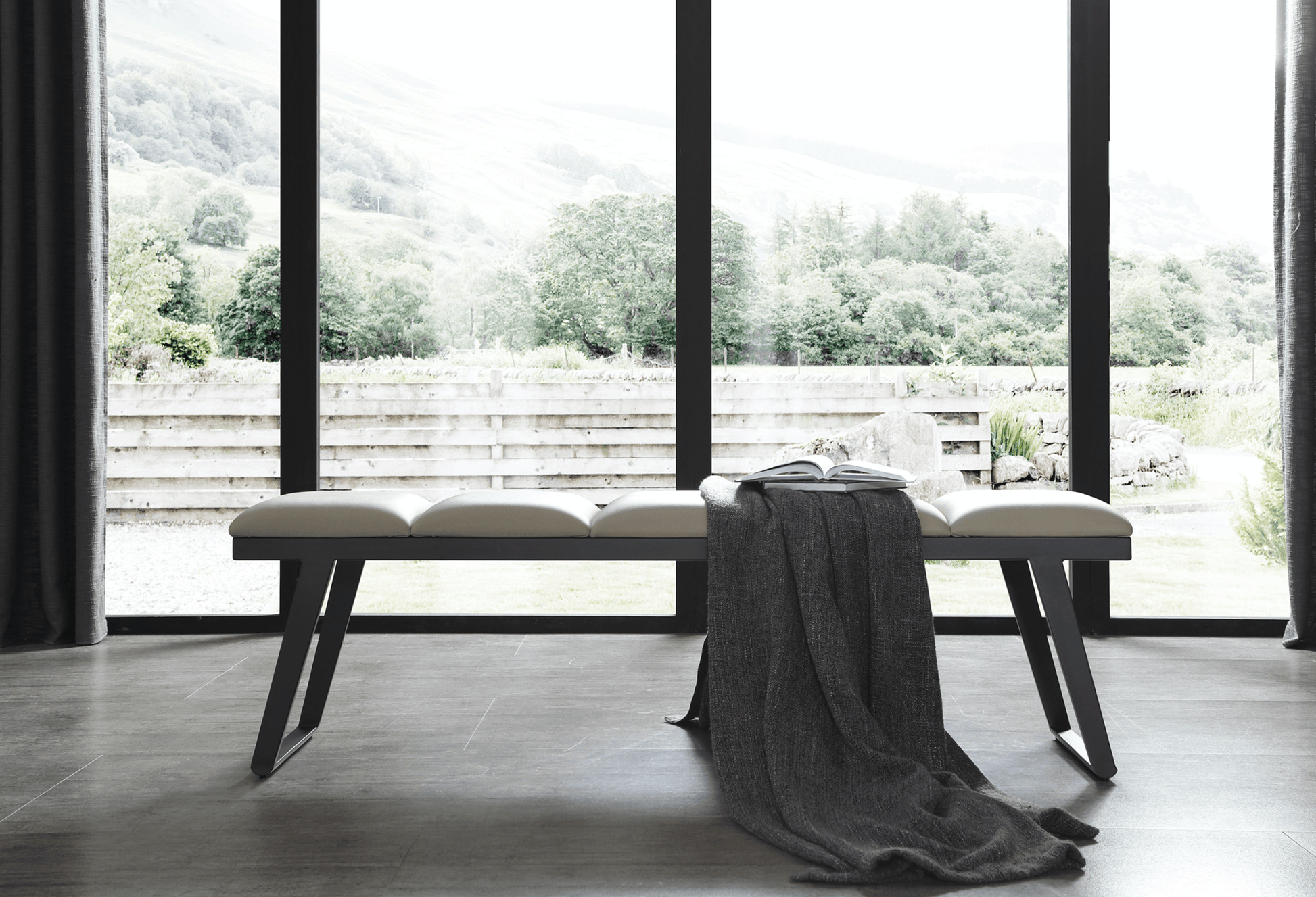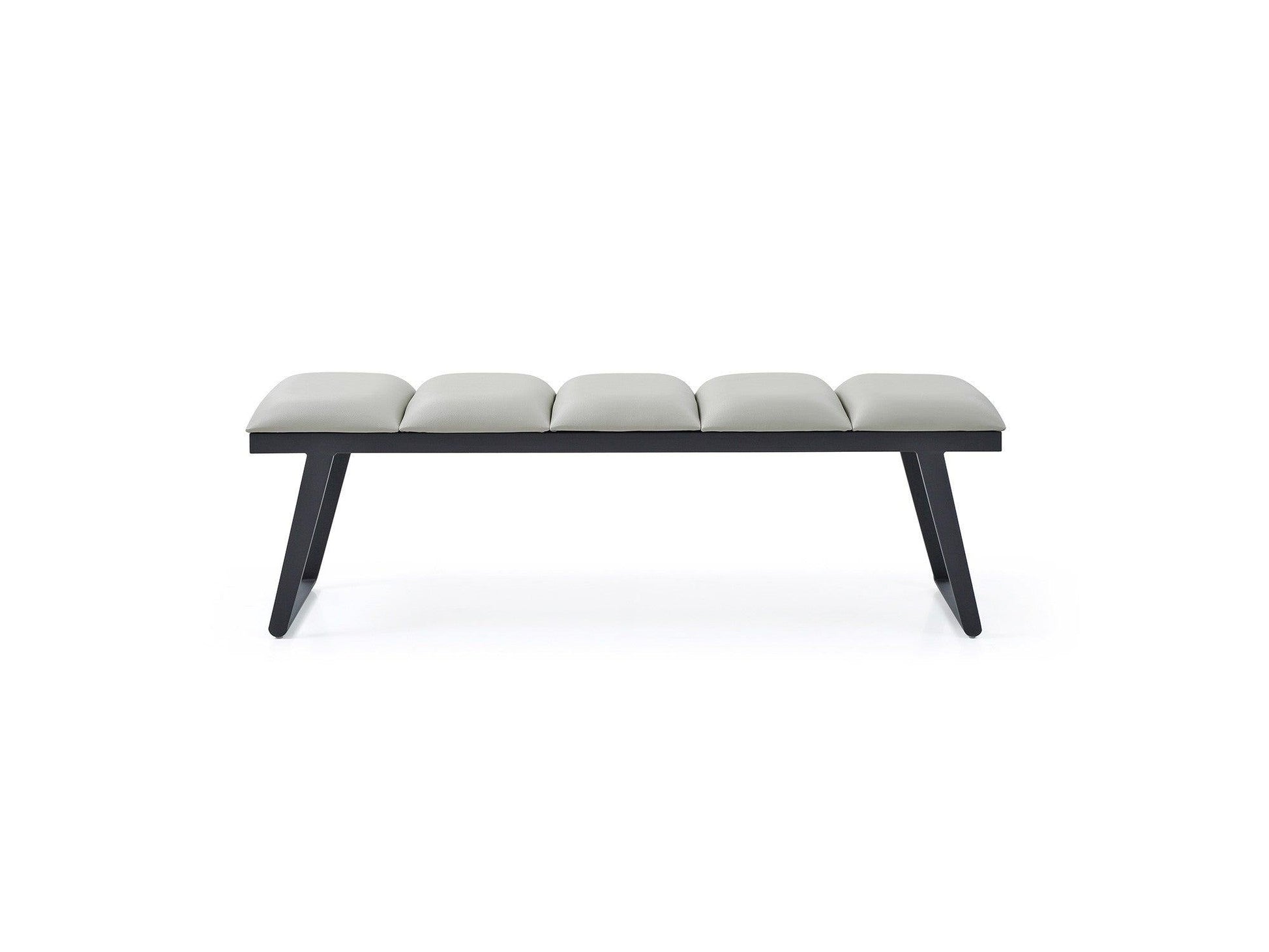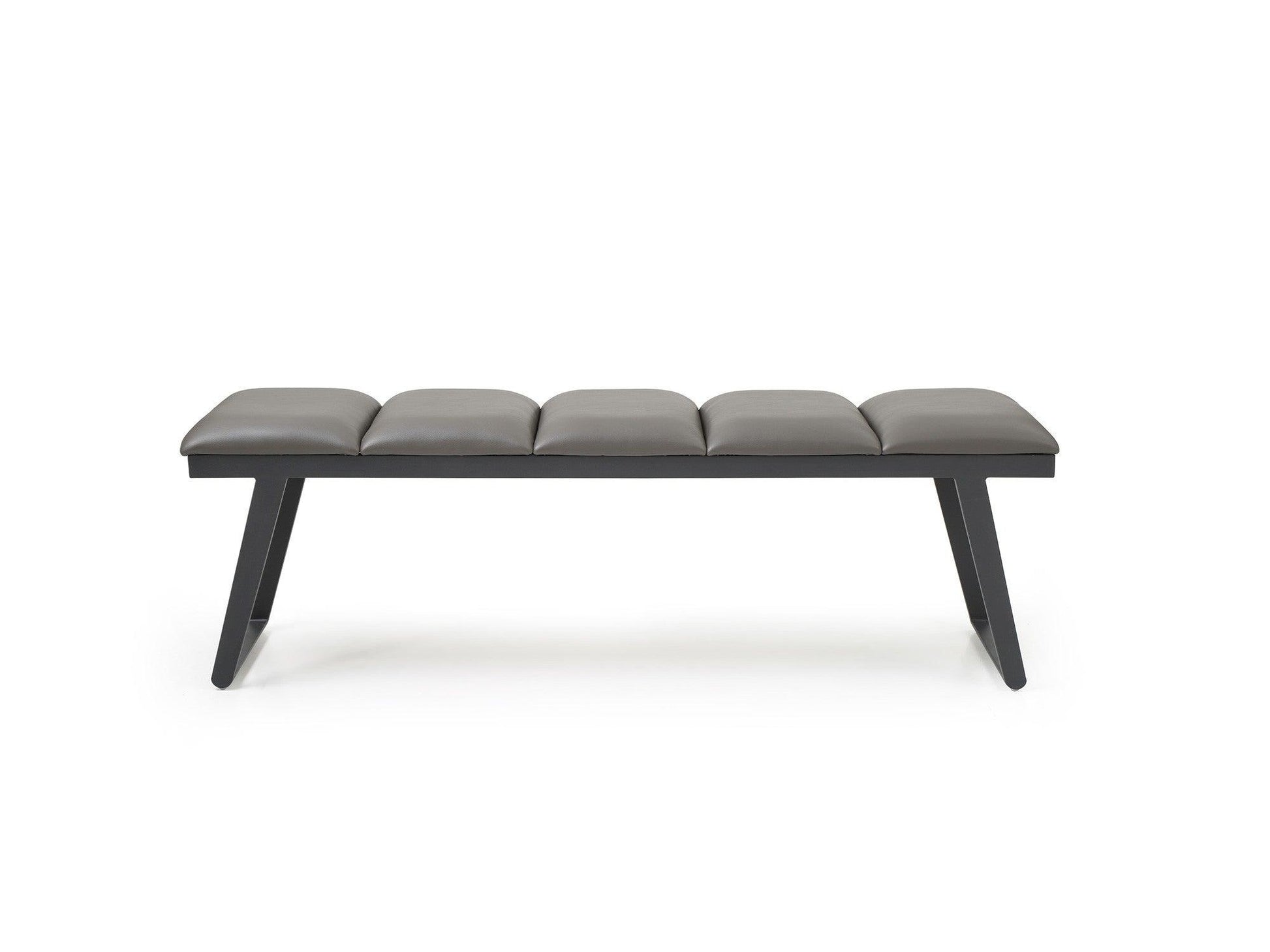 Ecopelle grigio scuro o grigio chiaro. Telaio con base in acciaio e rivestimento nero sabbiato.