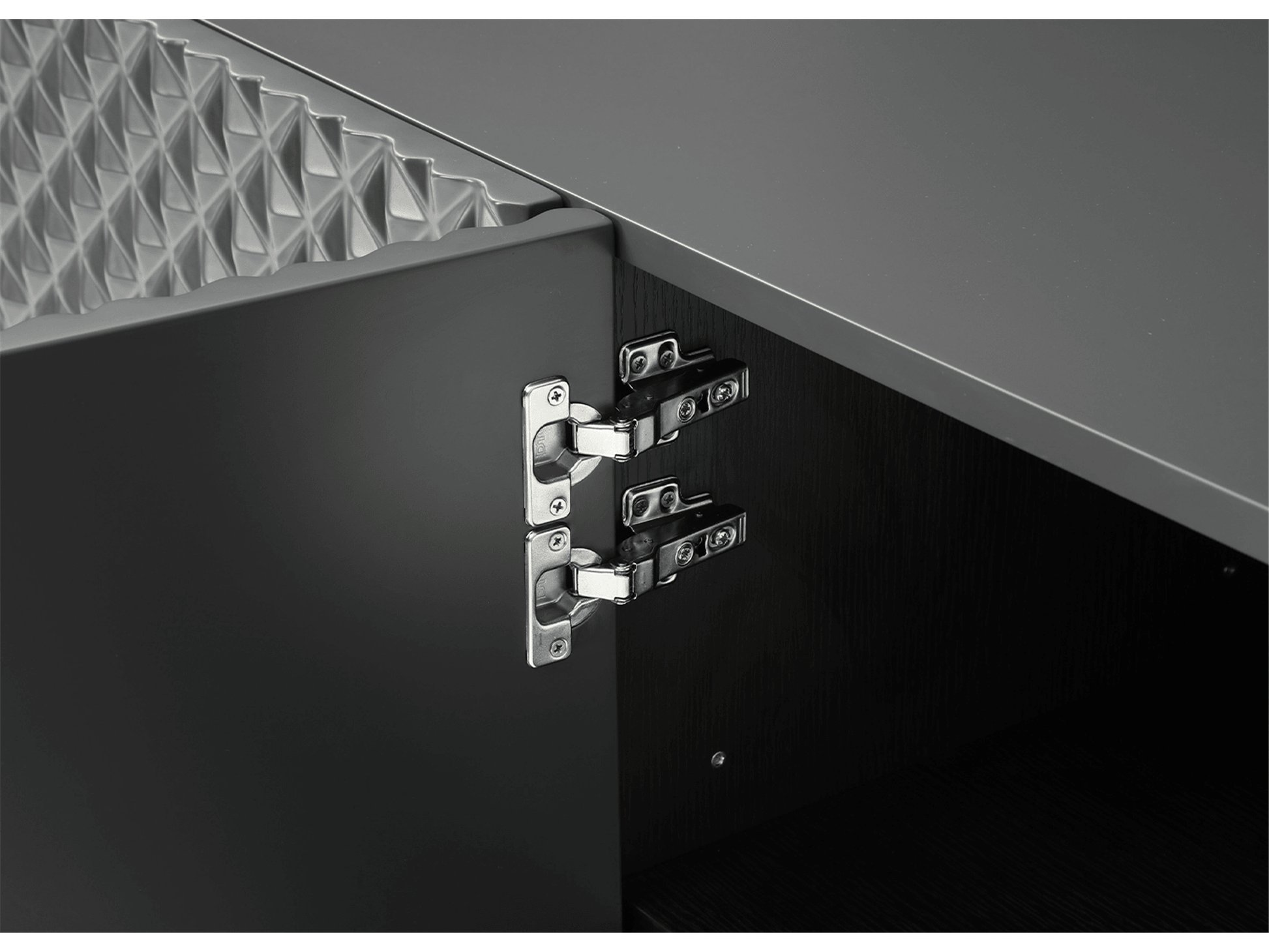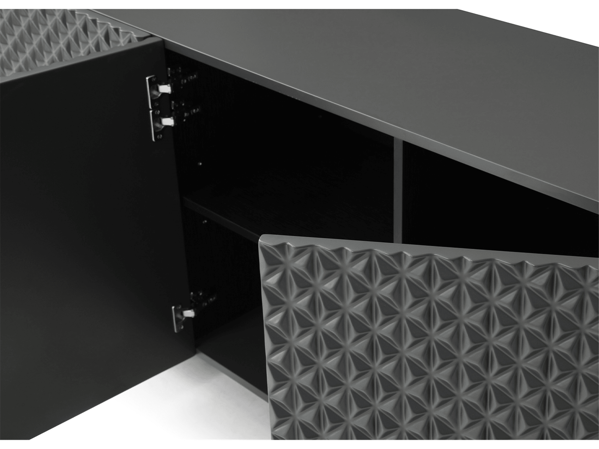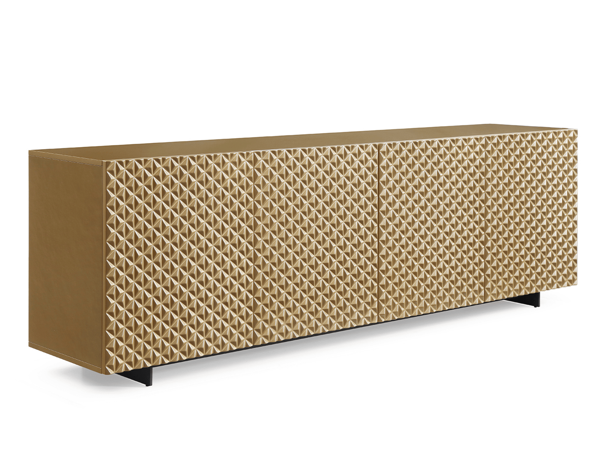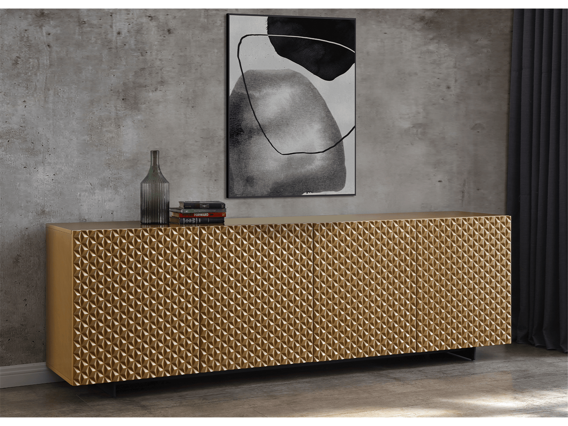 La credenza Jon, presentata in finitura oro lucido o grigio scuro opaco con base verniciata a polvere nera e gambe in metallo nero, aggiungerà un tocco di lusso alla vostra sala da pranzo. Le ante a forma di onda si incastrano perfettamente e la credenza vi lascerà senza fiato.