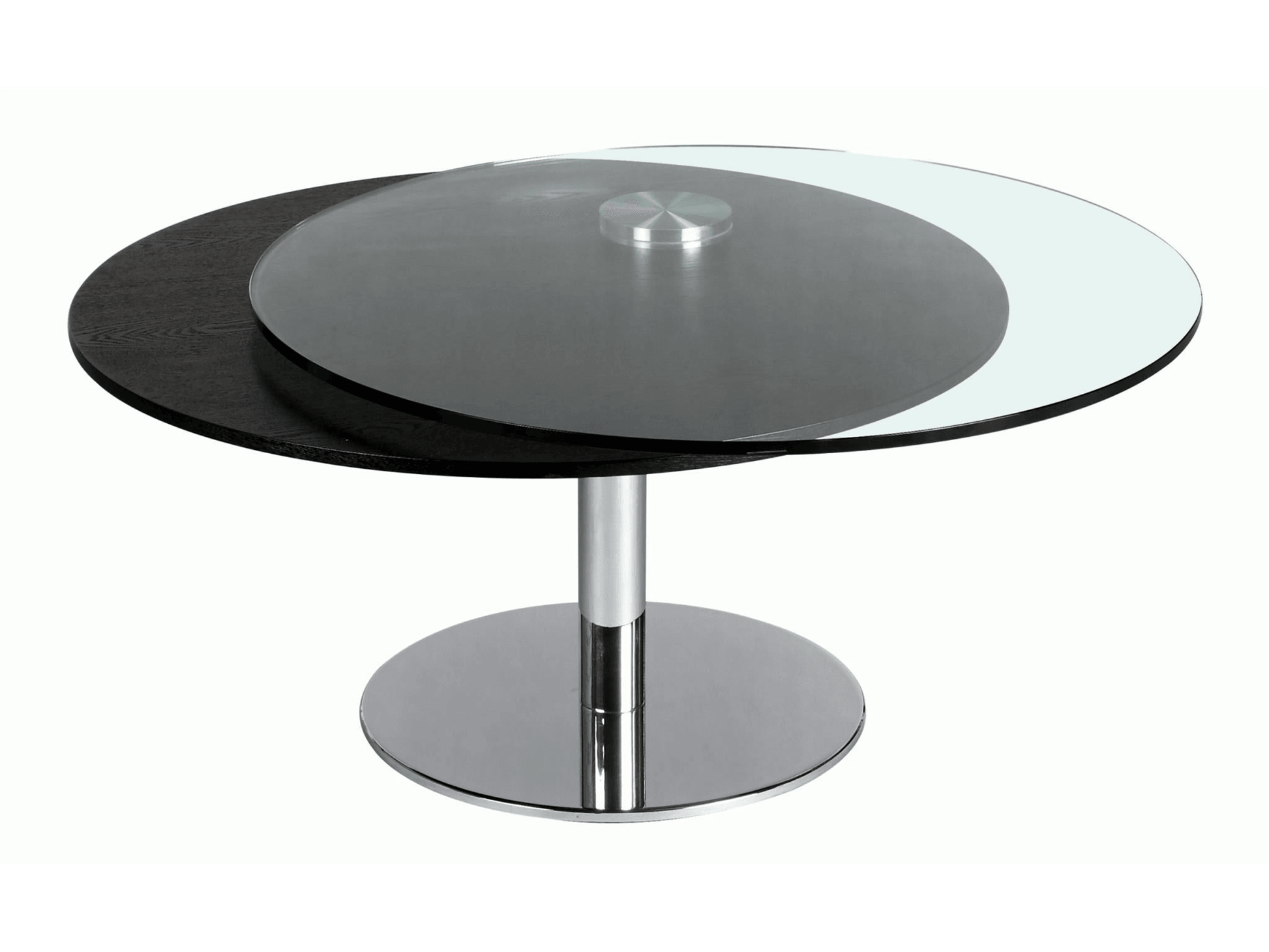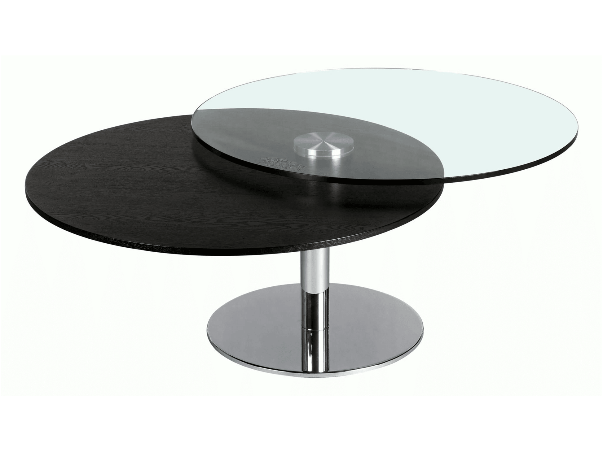 Tavolino da cocktail contemporaneo con doppio piano rotondo e tavolino laterale con piano in vetro e legno massello