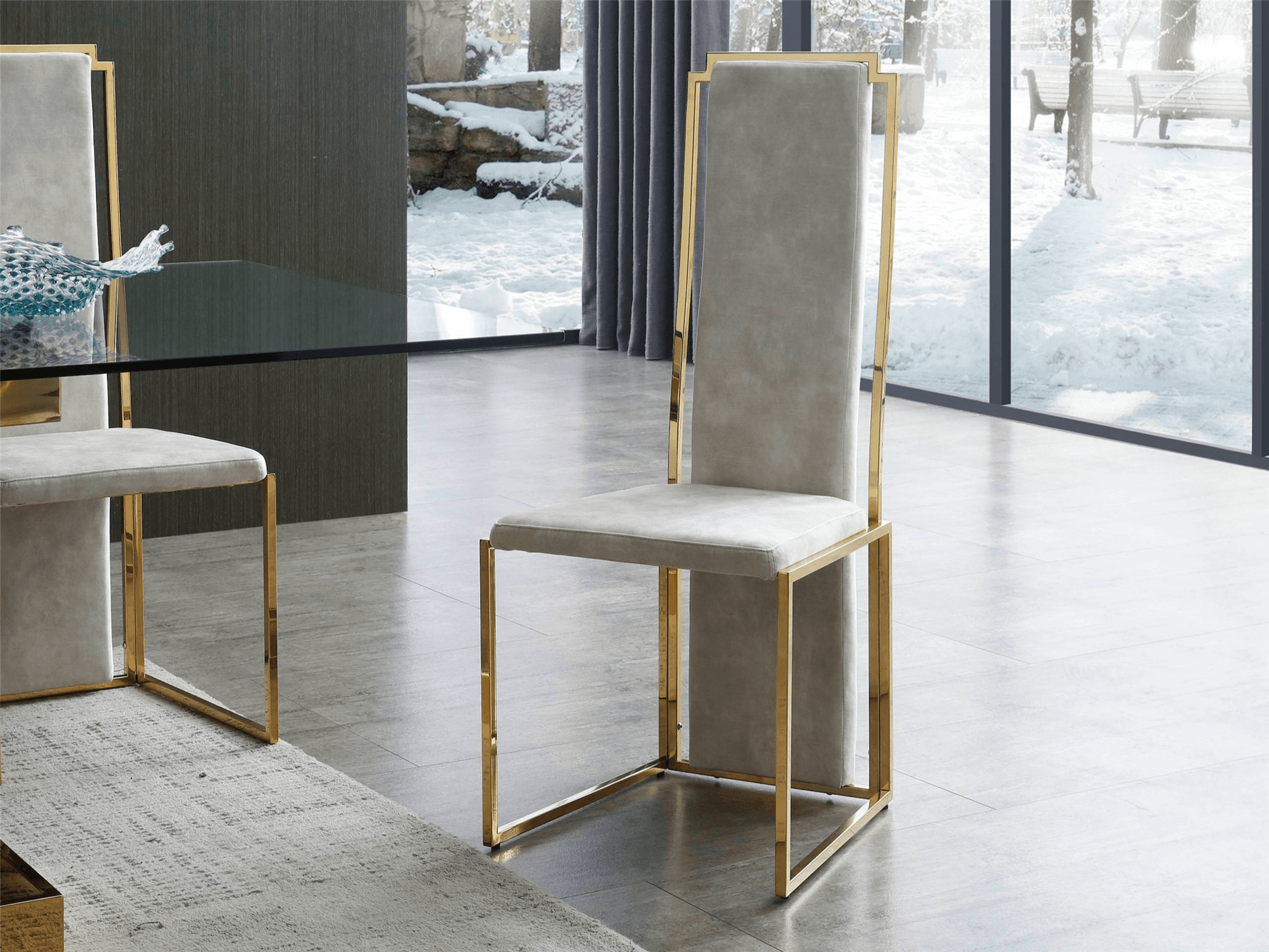 - Gambe e telaio posteriore in acciaio inossidabile dorato.