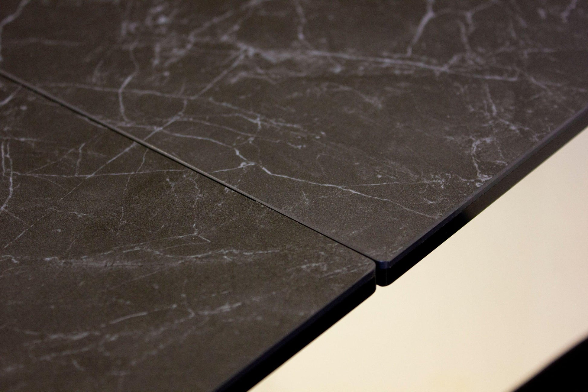 Tutti i nostri tavoli da pranzo con piano in ceramica italiana offrono il massimo dello stile, pur essendo incredibilmente resistenti e adatti alle famiglie. Sono antimacchia, antigraffio e adatti ai bambini. Le prolunghe estraibili manualmente, facili da riporre, presentano un motivo a tinta unita quando sono estese. La robusta base in acciaio massiccio rende il tavolo estremamente robusto. Freddo al tatto, una perfetta imitazione della pietra che consente di ottenere l'aspetto del marmo con la massima resistenza.