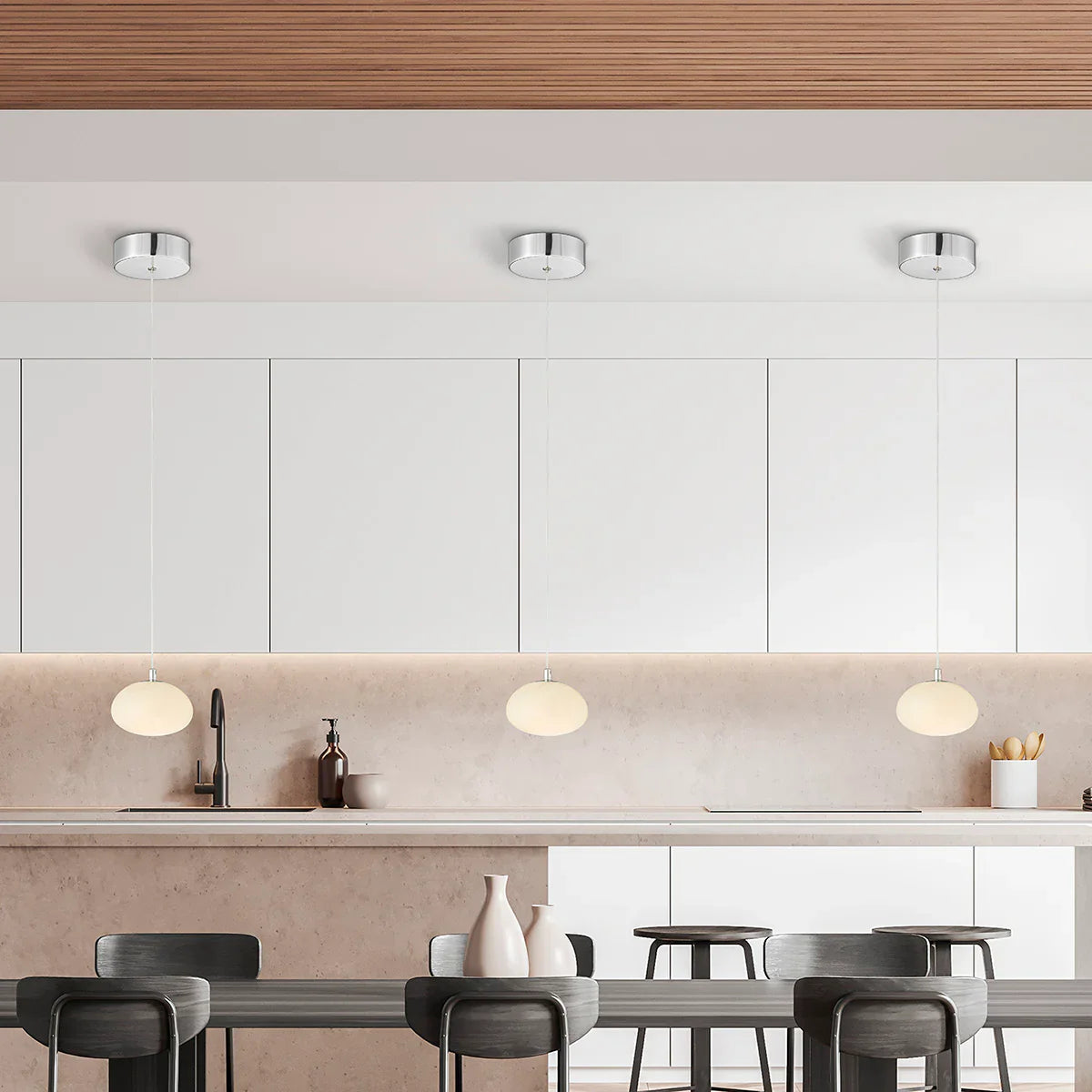 Realizzata in ferro e alabastro di alta qualità, questa lampada a sospensione offre bellezza e resistenza. Il paralume in alabastro liscio emette una luce morbida e diffusa, mentre la funzione LED dimmerabile integrata consente di regolare l'atmosfera a proprio piacimento. La finitura cromata aggiunge un tocco sofisticato, rendendola un'aggiunta perfetta a cucine, sale da pranzo o corridoi contemporanei. Con il suo design minimalista e la funzionalità all'avanguardia, la lampada a sospensione Ester combina perfettamente stile e tecnologia per un interno radioso e moderno.