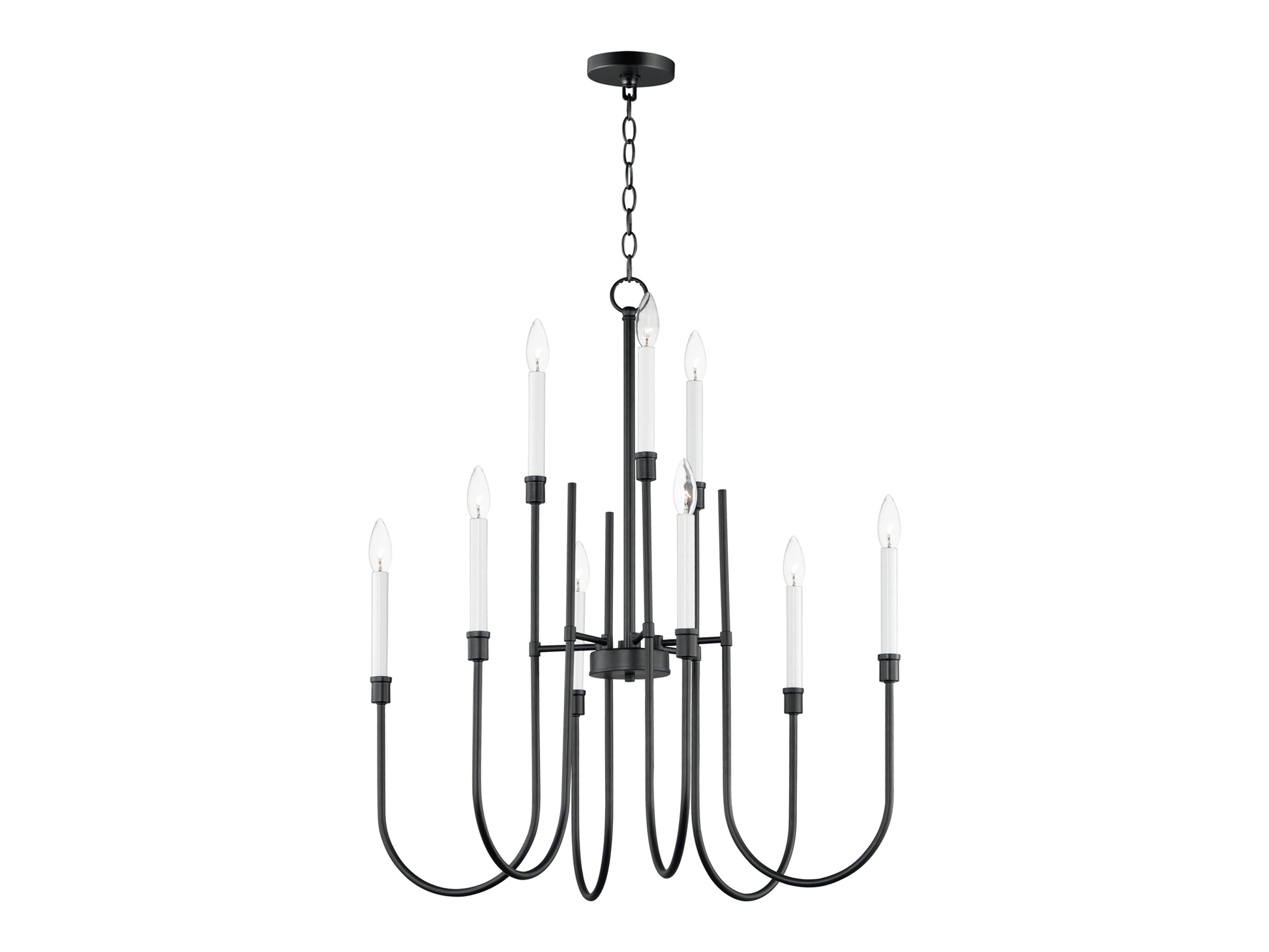 La collezione Lovell è un lampadario minimalista allungato con linee sinuose che evocano la metà del XX secolo. La finitura bicolore bianco e nero offre un'estetica classica, perfetta per l'utilizzo in una varietà di stili.