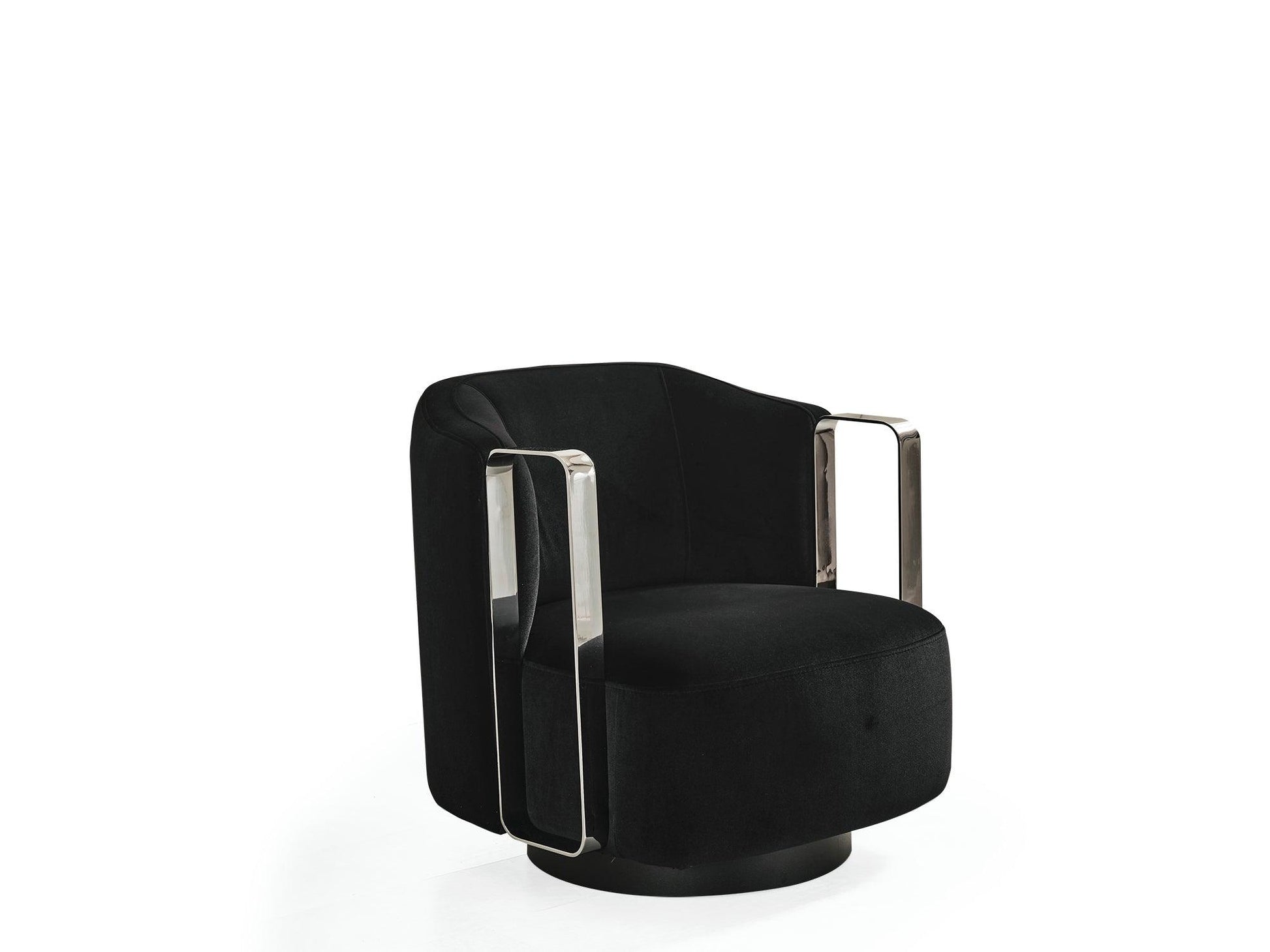 La poltrona Caiden Accent è dotata di tessuto nero, braccioli e base in nichel.