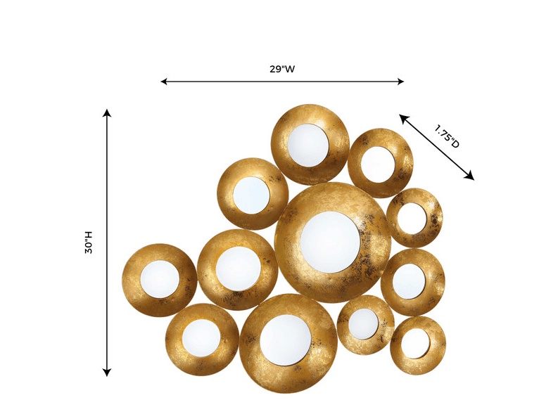Descrizione: Dotati di una finitura dorata anticata e di cornici smussate, questi dodici specchi di diverse dimensioni si uniscono per creare un pezzo straordinario.