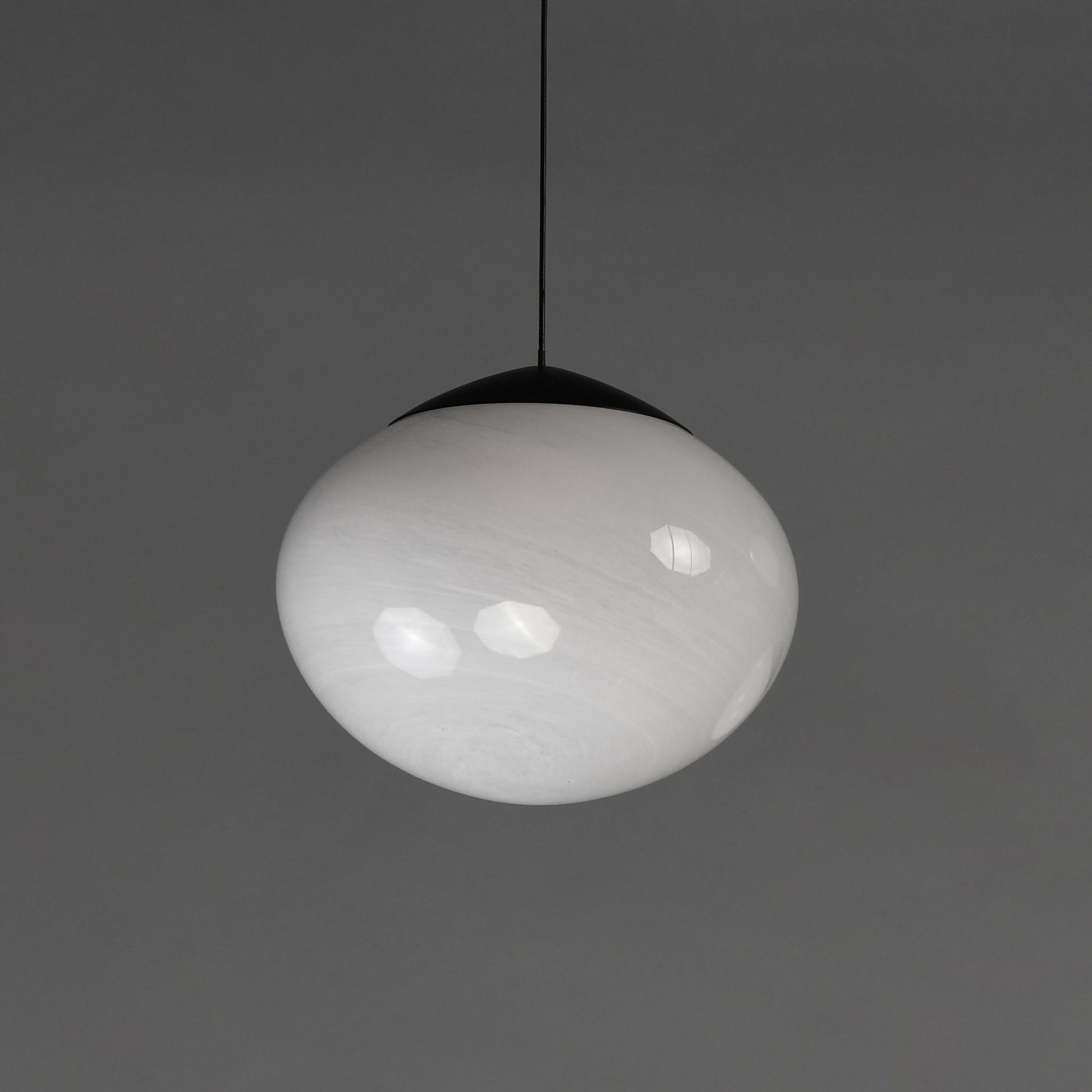 I paralumi in vetro oblungo presentano un intrigante motivo a vortice marmoreo che nasconde l'illuminazione a LED integrata. I sottili cavi elettrici neri sono facilmente regolabili. Una configurazione ovale più grande a 8 luci presenta diverse dimensioni del vetro per creare un suggestivo insieme di nuvole. Disponibile anche come sospensione a 3 luci, 5 luci e singola.