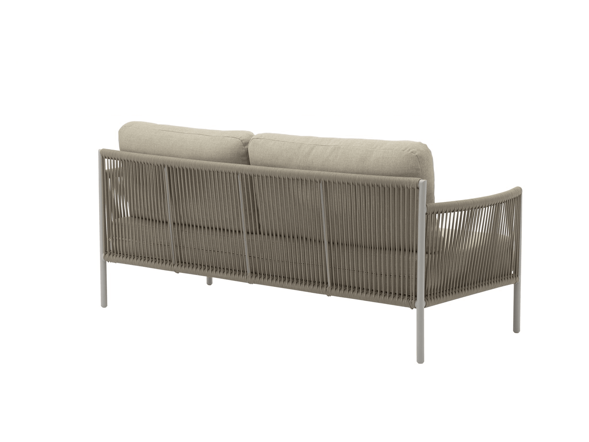 Collezione da esterno Ashlyn 4 pezzi, struttura in alluminio grigio scuro, corda grigio chiaro con cuscini impermeabili in grigio, piano in vetro con finitura in ceramica color caffè