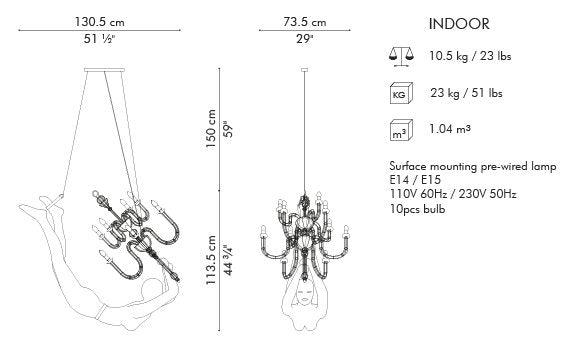 Limbo cattura l'attimo spontaneo di un trapezista in volo. Realizzato con fili sottilissimi intrecciati a mano in un motivo a reticolo, questo design scenografico è al tempo stesso un'opera d'arte e una lampada funzionale.