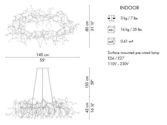 Centinaia di singole statuette incarnano la natura giocosa dei Piccoli Popoli. La fibra di Salago viene applicata a mano per aggiungere volume e corpo a una composizione scultorea in acciaio. Il risultato è al tempo stesso spettacolare e significativo, e mostra cosa succede quando le persone si uniscono e lavorano insieme.