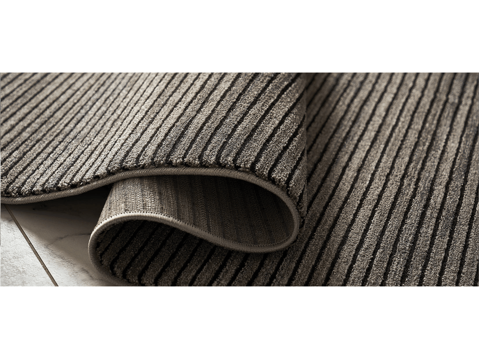 Il tappeto Pipa, che offre un aspetto equilibrato e potente con profonde sfumature di grigio, si adatta facilmente a diversi stili di arredamento grazie al suo design essenziale. Il tappeto Hyper, con la sua struttura antiallergica che non trattiene polvere e sporco, dona un'interpretazione elegante e raffinata agli spazi abitativi.