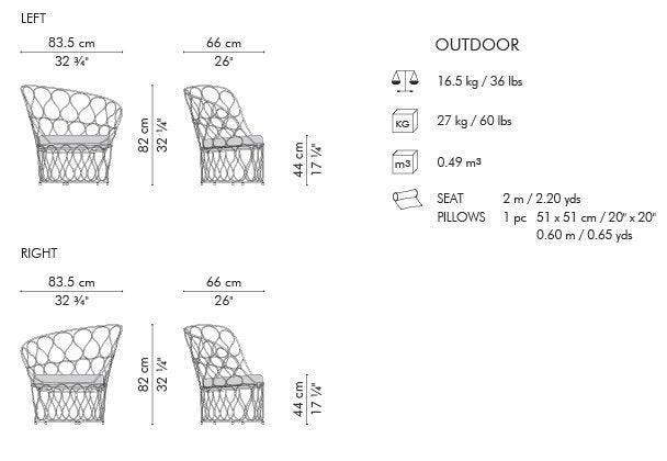 Una collezione contemporanea perfetta sia per gli spazi interni che per quelli esterni, la forma equilibrata della poltrona e del daybed li rende ideali per rilassarsi. Disegnata da Federica Capitani, la sottile struttura in acciaio è rivestita da tre fili di diverso diametro che sottolineano il carattere moderno di Forma.
