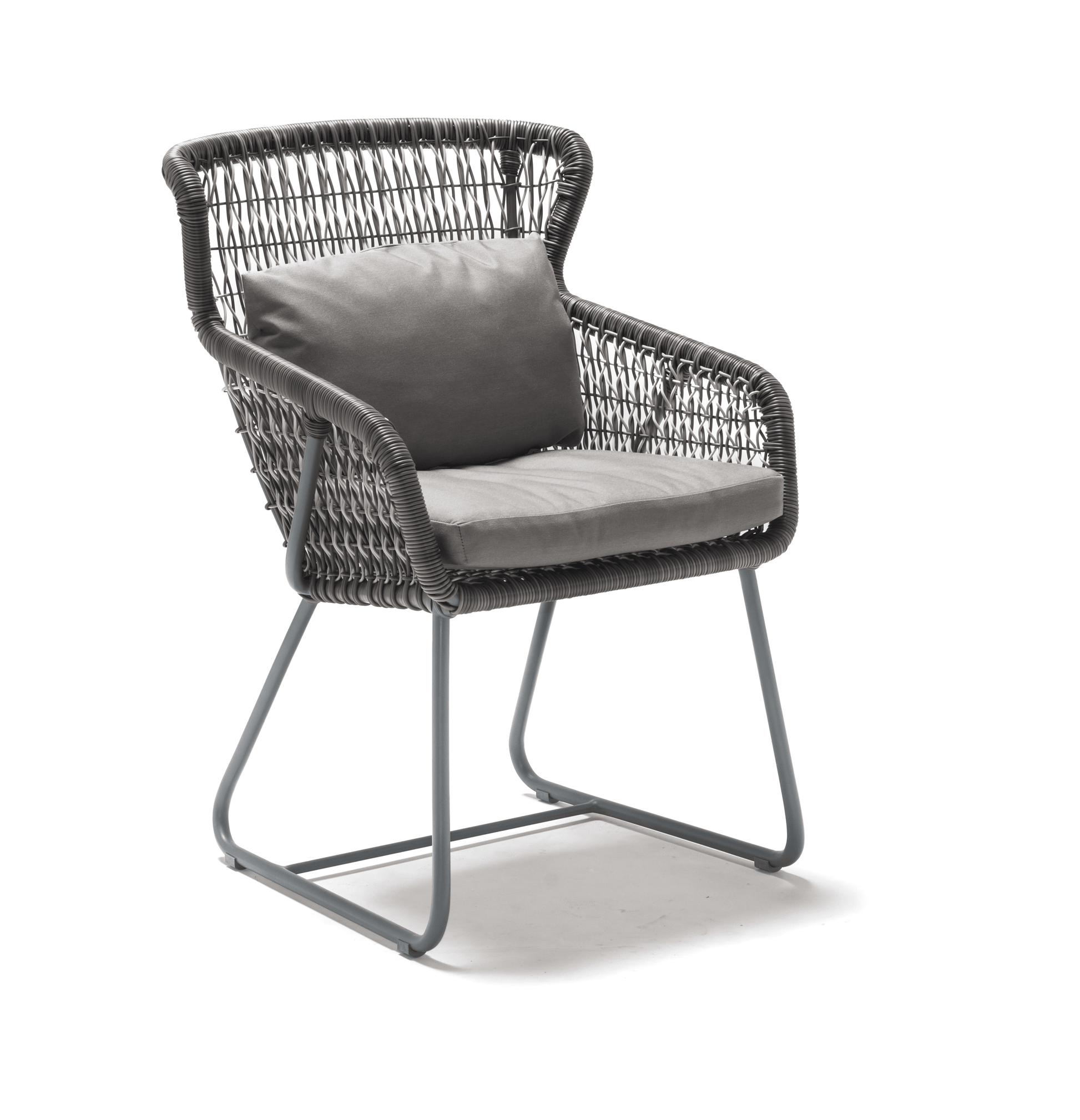 Eleganza e raffinatezza si riflettono in Isabella, con le sue silhouette aggraziate ispirate alla forma delle vele marittime che svolazzano al vento. Progettata da Budji Layug, questa collezione è realizzata in alluminio, polietilene e polimeri di pietra fusa, per un design moderno ed elegante.