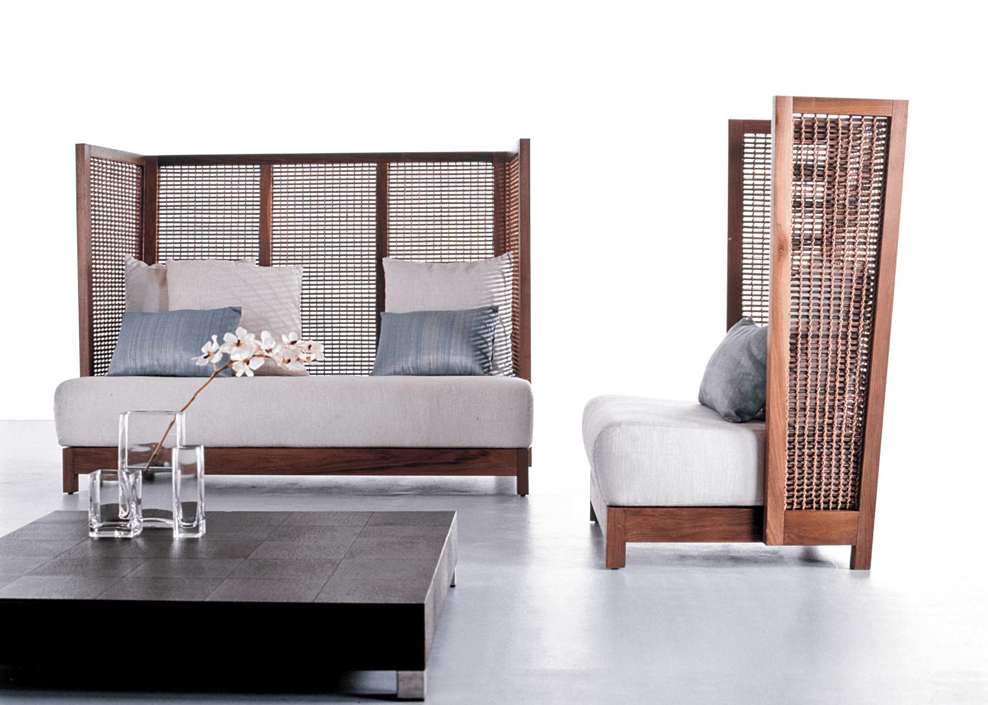 La collezione Suzy Wong si ispira agli alti e romantici paraventi delle tradizionali case orientali. I pannelli intrecciati creano un senso di intimità, ideale per chiacchierare sorseggiando un caffè o un tè.