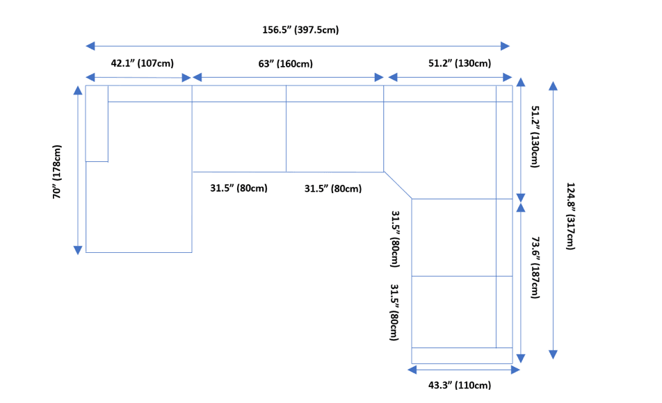 Larghezza: 125/156,5'Profondità: 43,3/70'Altezza: 29/38'Peso: 507 libbre