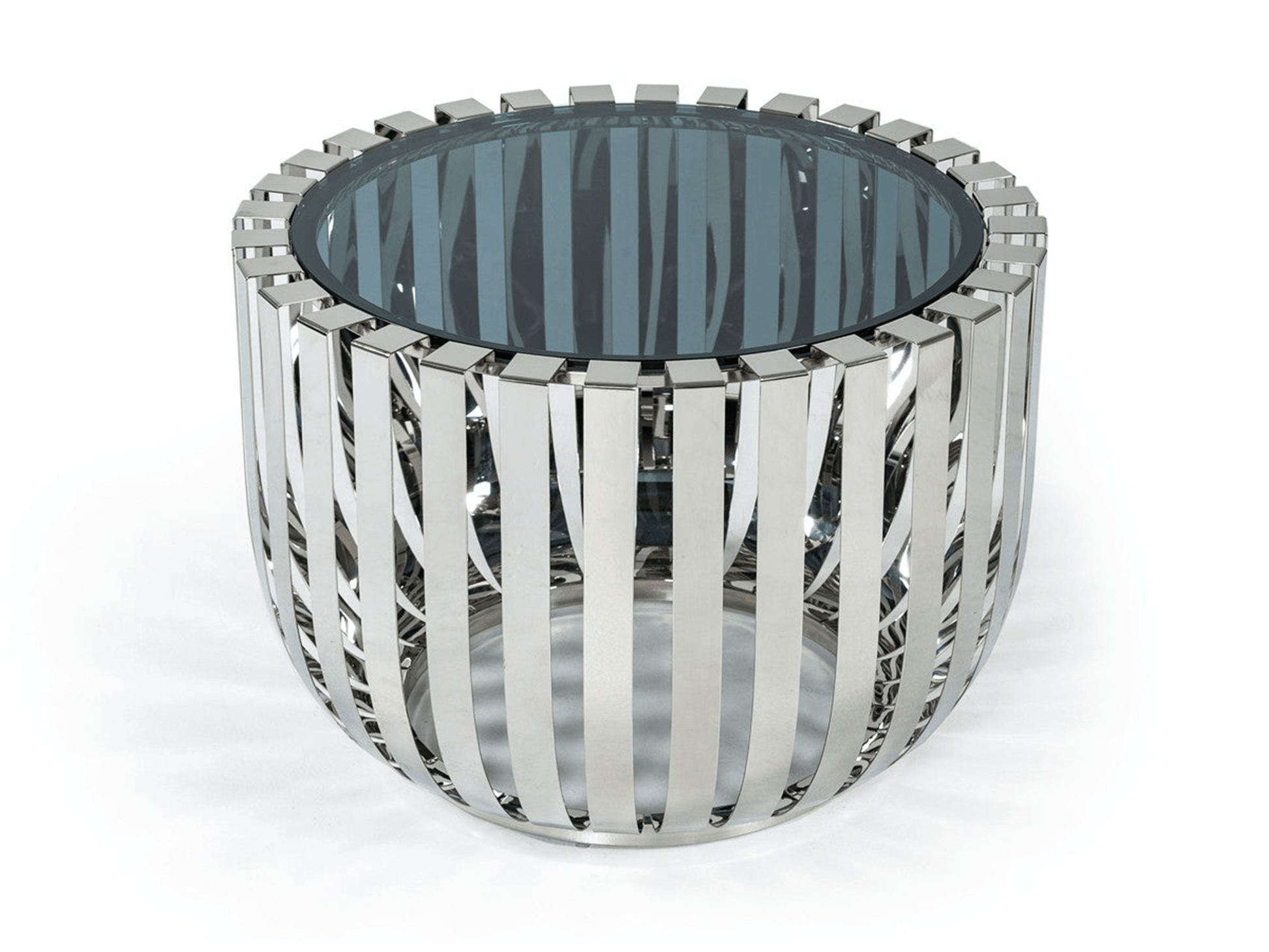 Questo tavolino laterale include una base in acciaio inossidabile e un piano in vetro fumé da 8 mm