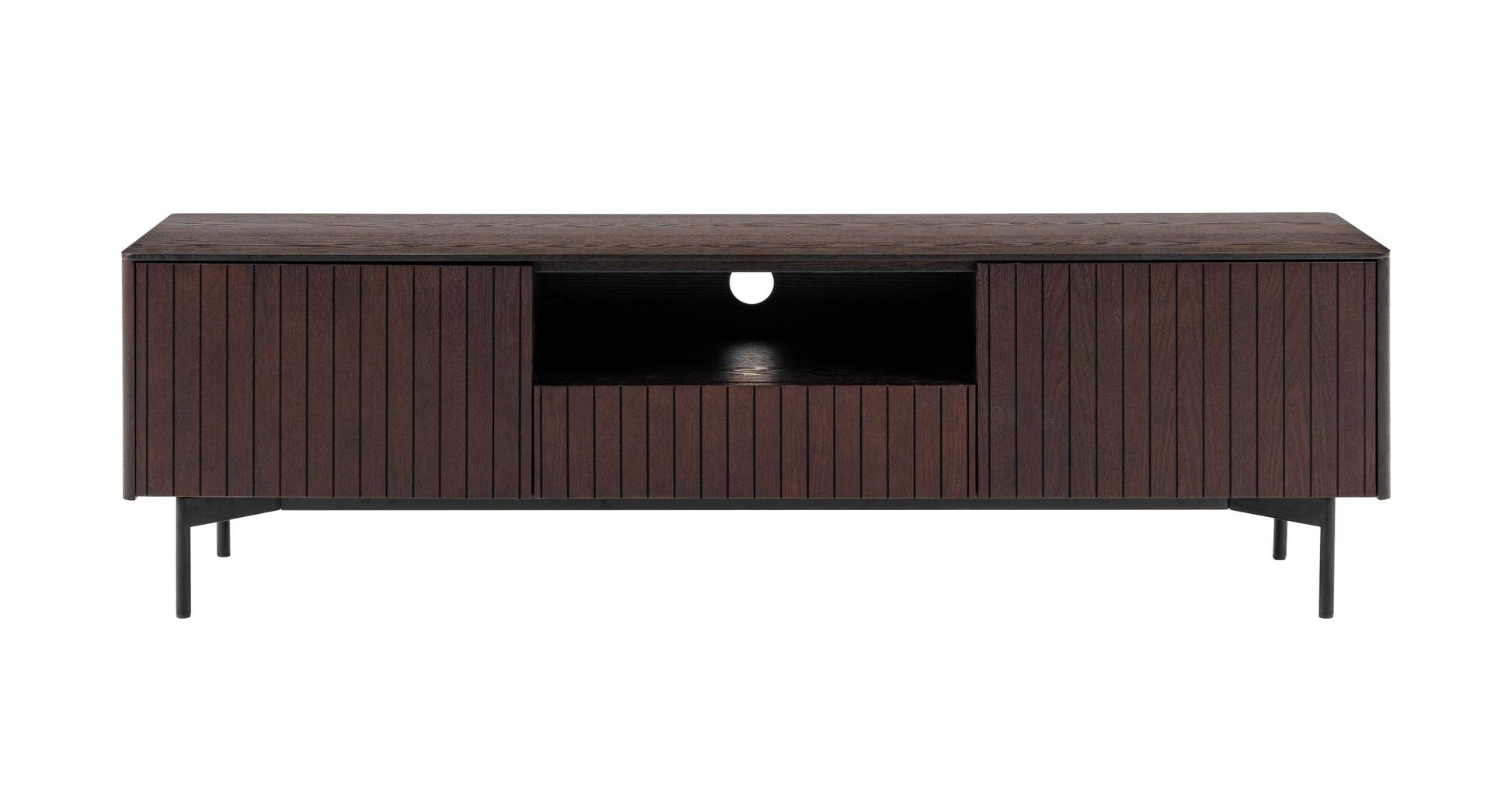 Il mobile porta TV Cattelan è un bellissimo mobile in stile moderno, perfetto per la nostra casa contemporanea. Il rivestimento in frassino fumé a doghe verticali è elegante ed efficace. Le gambe in metallo verniciato a polvere nero aggiungono un tocco rustico industriale a questo accattivante pezzo. Due mobili laterali con ripiani interni e un cassetto con chiusura ammortizzata. Uno spazio per i cavi adorna il retro, creando la massima funzionalità.