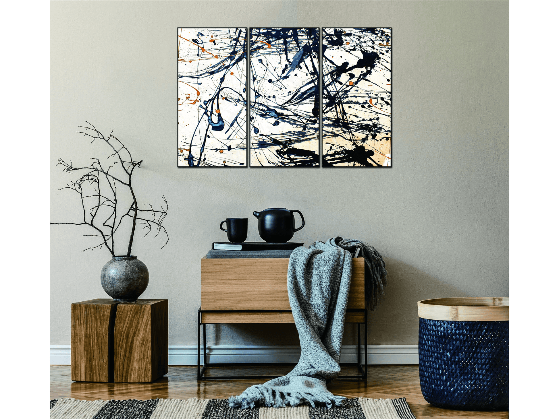 Quadro su tela Nathaniel composto da 3 pezzi con cornice in PS nera, 48″x28″ (ciascuno).