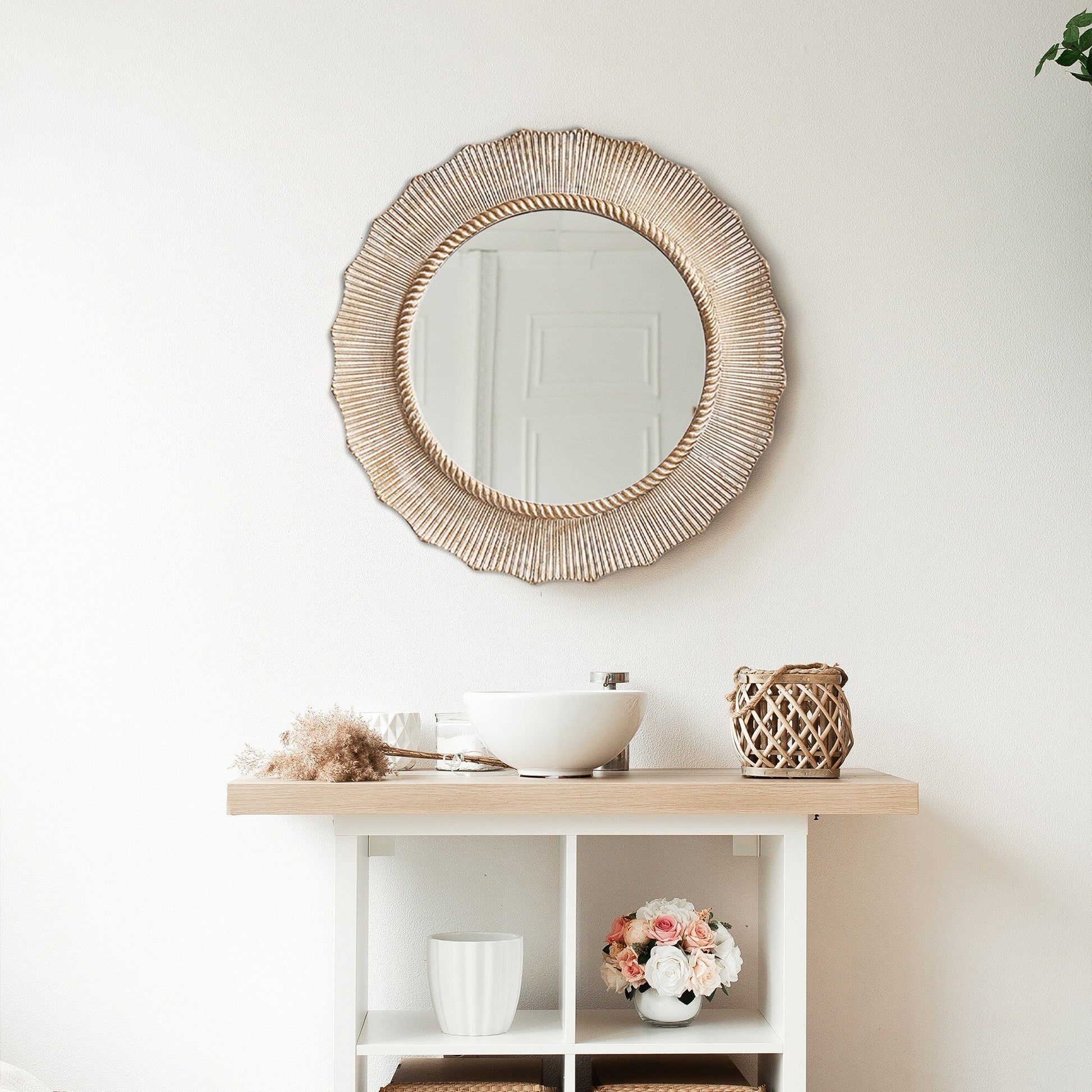 - Design speciale : aggiungi un tocco di raffinatezza rustica al tuo spazio abitativo con questo specchio da parete, realizzato da artigiani del legno; questo specchio presenta una semplice cornice rotonda e una finitura in legno lavato; posizionalo sopra un lavandino nella zona del bagno per un tocco caldo e rustico.