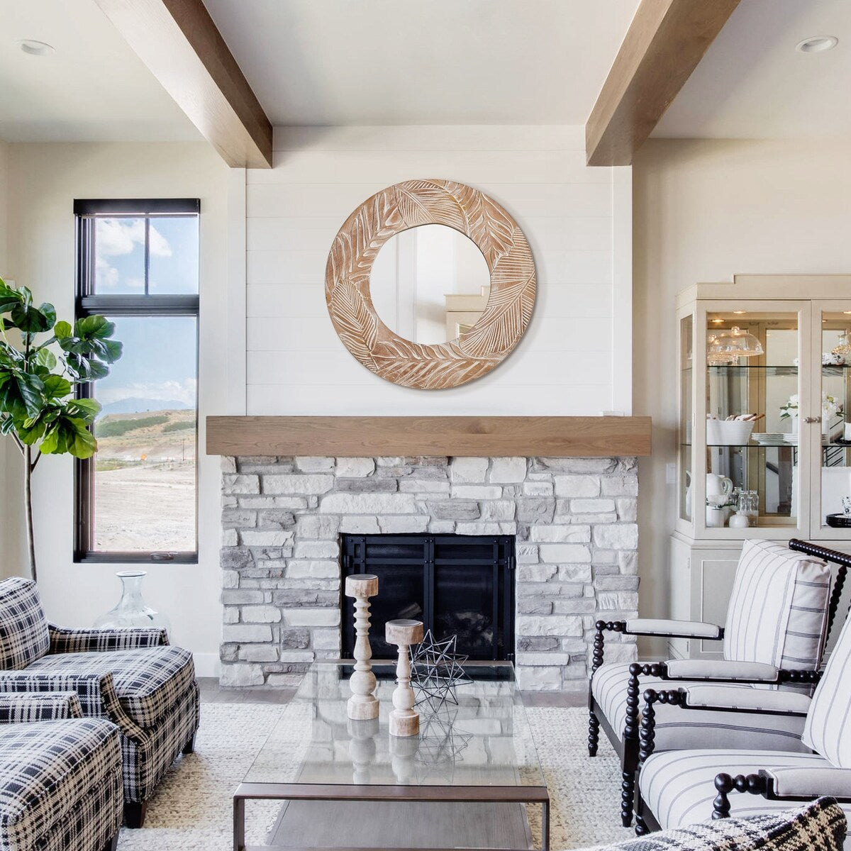 Specchio da parete rotondo in legno intagliato stile fattoria - 28 x 28