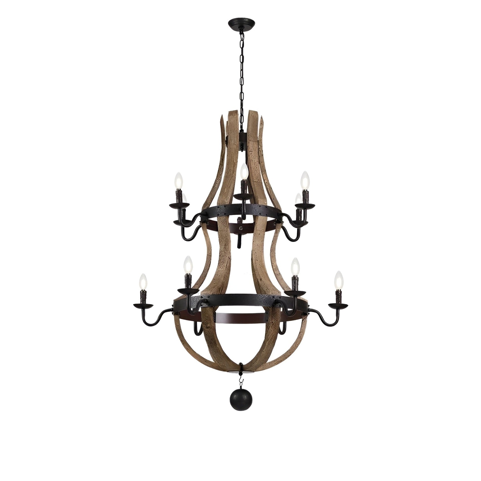 Lampadario a botte di vino a due livelli in stile country francese con 12 luci