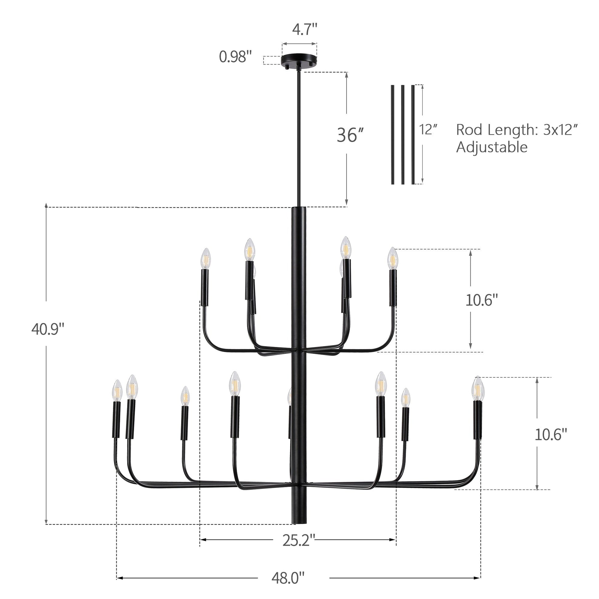 Lampadario minimalista a 15 luci, design antico a 2 livelli - 48