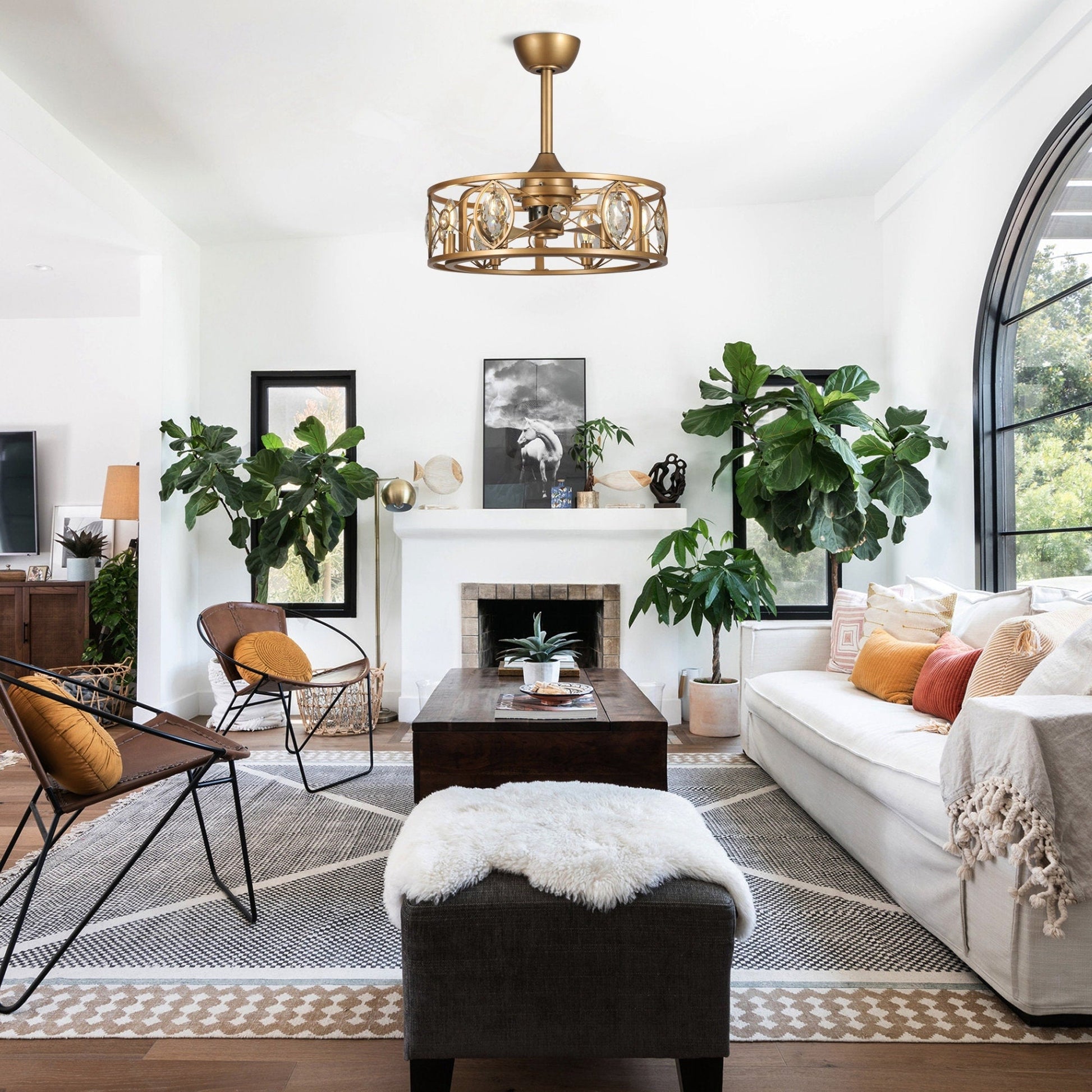 Illumina e ariosa una stanza con la calda finitura in ottone di questo piccolo ventilatore da soffitto in cristallo scintillante, ideale per illuminare l'ambiente e rinfrescare. Parrot Uncle presenta un ventilatore da soffitto da 22 piedi che combina elementi di design moderno, rustico e industriale. È dotato di una struttura in ottone circondata da grandi cristalli, abbinata a tre pale in ABS stampato con finitura in ottone per aggiungere un tocco di moderna eleganza. Combinando gli elementi di un ventilatore da soffitto e di un lampadario, questo pezzo è dotato anche di sei kit di luci a LED (non inclusi), distribuiti all'interno del ventilatore a lampadario. Utilizza il telecomando a 3 velocità incluso per impostare facilmente sia la luce che il movimento dell'aria in base alle tue esigenze.