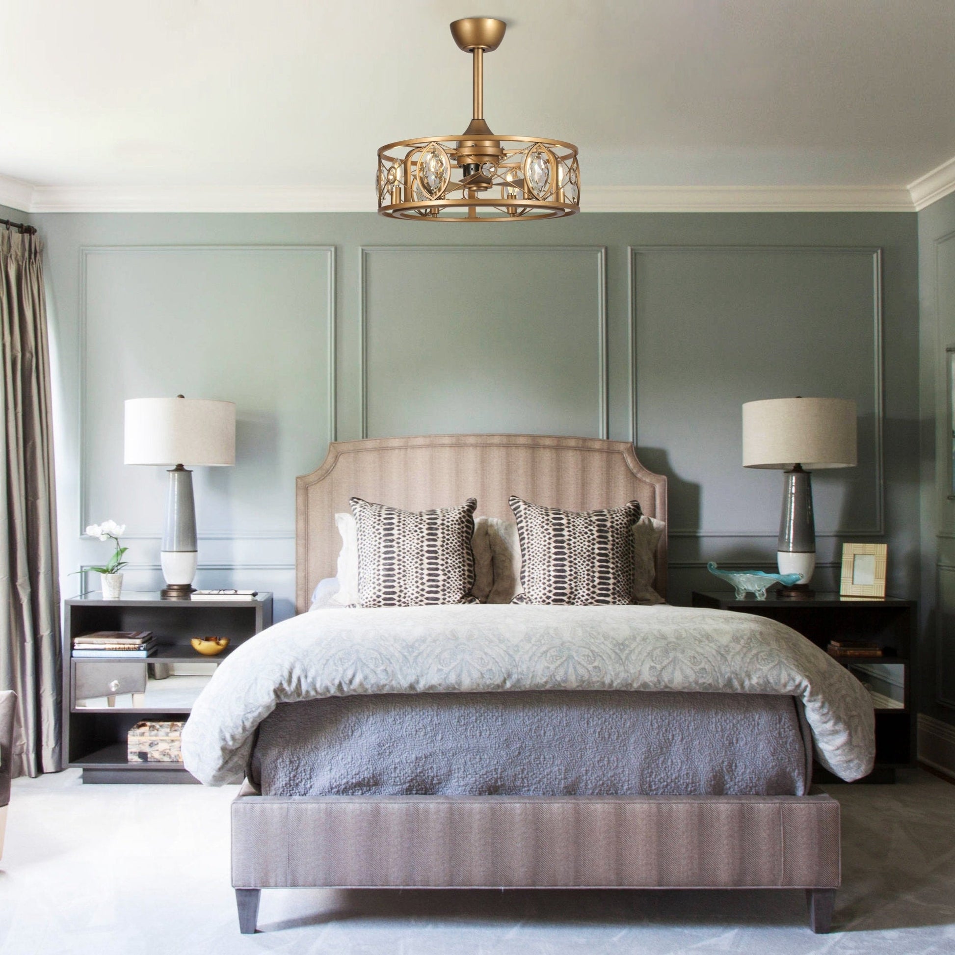 22 Lampadari moderni con ventilatore da soffitto in gabbia di cristallo e telecomando