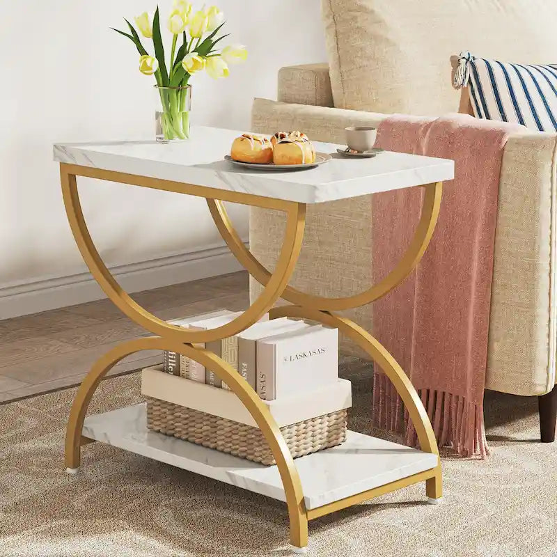 Tavolino laterale rettangolare da 23 pollici con 2 ripiani ed elegante struttura in metallo per comodino da camera da letto, comodino, lato divano