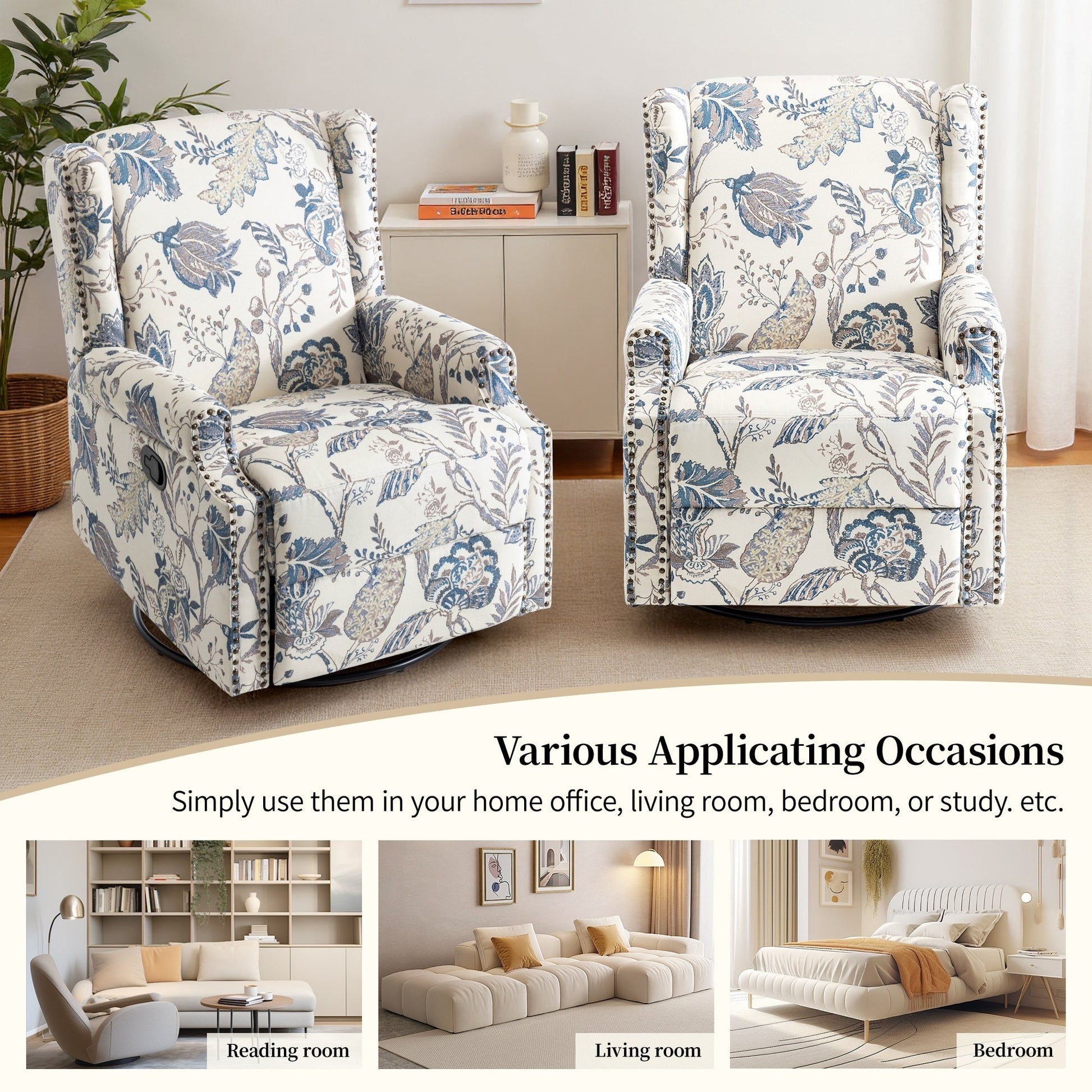 Questa poltrona reclinabile girevole dal design lussuoso offre un perfetto connubio tra innovazione ergonomica ed eleganza senza tempo. Rivestita in tessuto di cotone e lino traspirante e morbido al tatto, offre una lunga durata e un'esperienza di seduta invitante. Il design artistico floreale e botanico le conferisce un fascino sofisticato, rendendola un complemento straordinario per interni sia contemporanei che classici. Progettata per una reclinazione senza sforzo, lo schienale regolabile si sposta dolcemente con un semplice meccanismo a maniglia laterale, consentendo di ottenere l'angolazione perfetta per il relax. La robusta base girevole in metallo garantisce una rotazione stabile a 360 gradi, offrendo una mobilità superiore. Il poggiapiedi integrato si estende automaticamente, offrendo un supporto ottimale per la parte inferiore del corpo e un comfort superiore. Realizzata con ingegneria di precisione e materiali di alta qualità, questa poltrona è progettata per resistere all'uso quotidiano offrendo al contempo un'esperienza di relax senza pari.