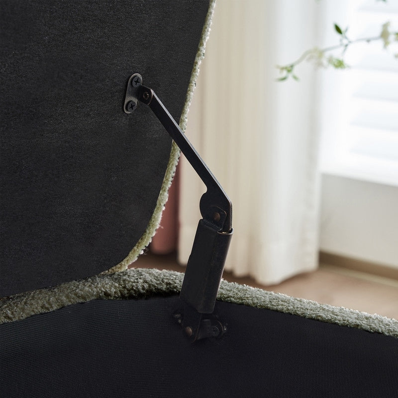 【Costruzione robusta】Supportata da resistenti gambe in legno sintetico, la panca pouf vanta stabilità e durata. Il coperchio incernierato è dotato di robusti elementi in metallo placcato, garantendo prestazioni affidabili e un utilizzo duraturo. Dotato di una comoda maniglia in bouclé, l'accesso al vano portaoggetti è semplice. Basta sollevare il coperchio per scoprire ampio spazio per riporre gli oggetti, rendendo l'organizzazione un gioco da ragazzi.