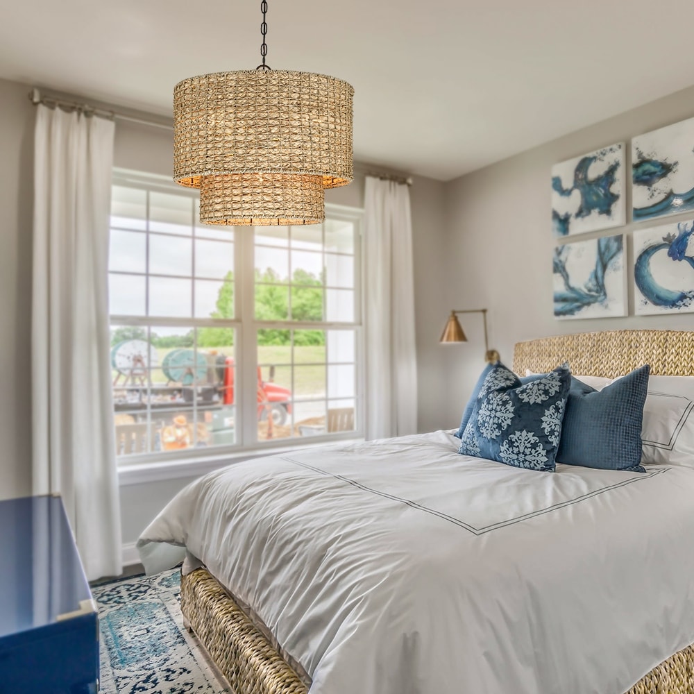 Niente aggiunge calore e un'atmosfera informale e invitante come un lampadario intrecciato. Questa lampada a sospensione è meticolosamente intrecciata a mano con alghe marine naturali e rattan, in una silhouette a tamburo oversize. All'interno, un gruppo di 4 luci in nero opaco proietta una luce generosa e crea interessanti giochi d'ombra sulle pareti dell'ingresso, della sala da pranzo o della camera da letto. Questa collezione si adatta a una varietà di arredi boho e persino a case in stile costiero o rustico, ed è la scelta ideale per l'isola della cucina, il soggiorno, l'ingresso o sospesa sopra il tavolo della sala da pranzo o in camere da letto di qualsiasi tipo.