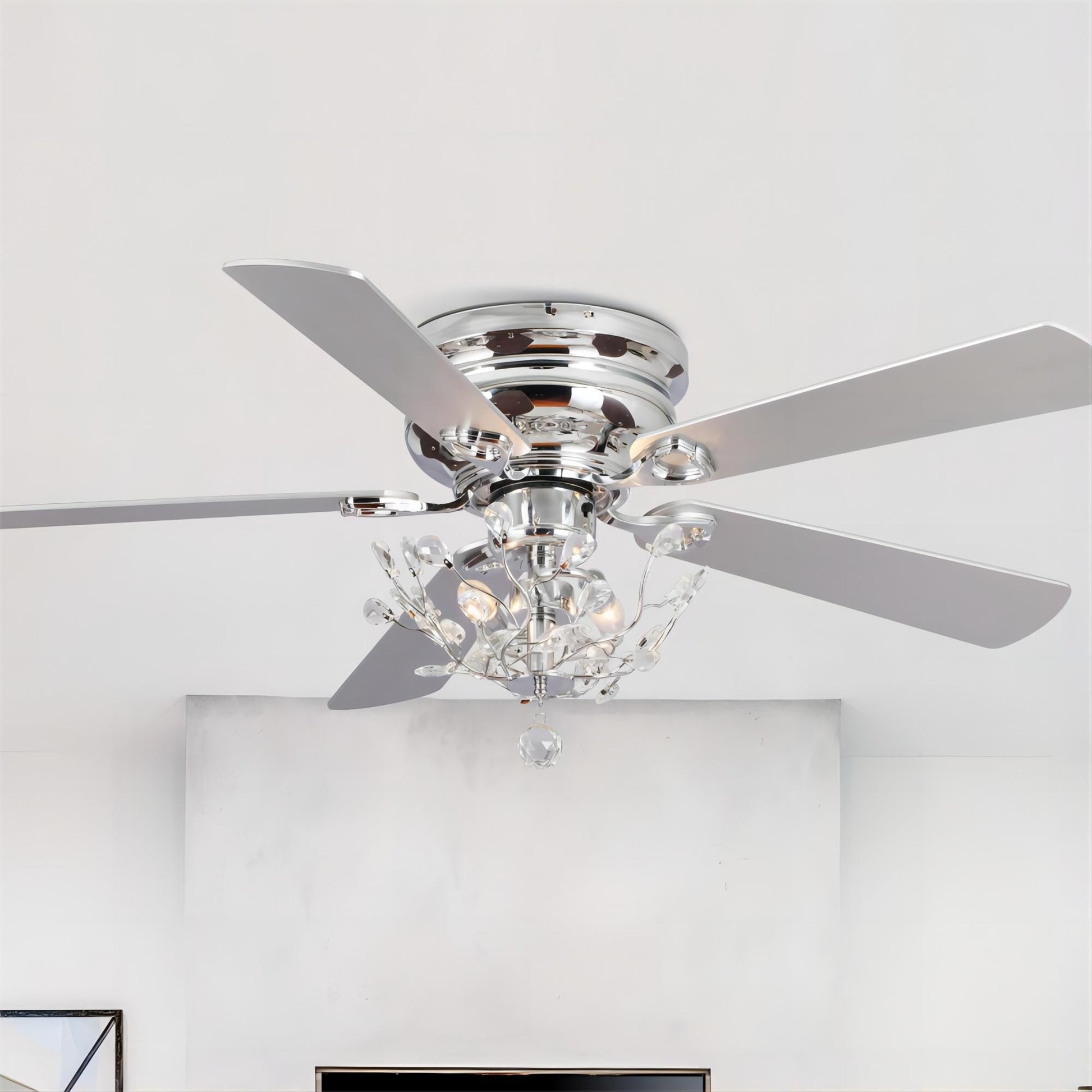 - Ventilatore da soffitto Fandelier in cristallo in stile moderno con profilo ribassato