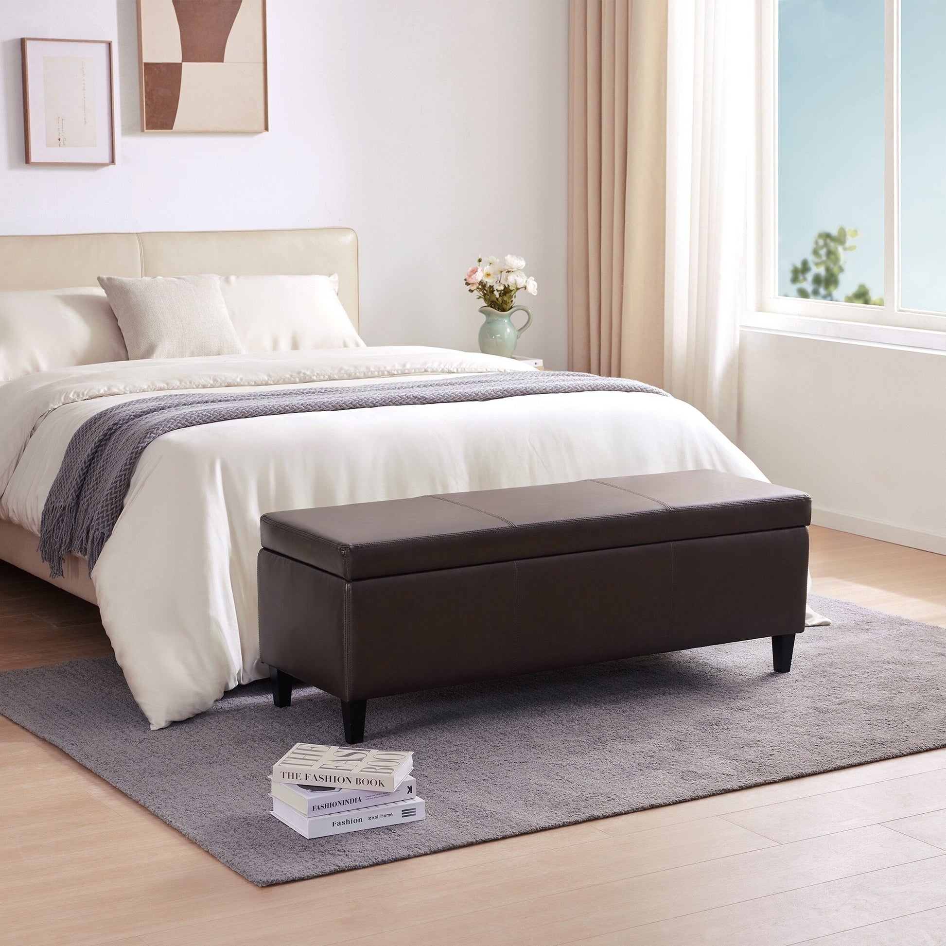 - Scopri la panca portaoggetti in pelle che più ti rappresenta, disponibile nei colori nero, marrone o crema.
