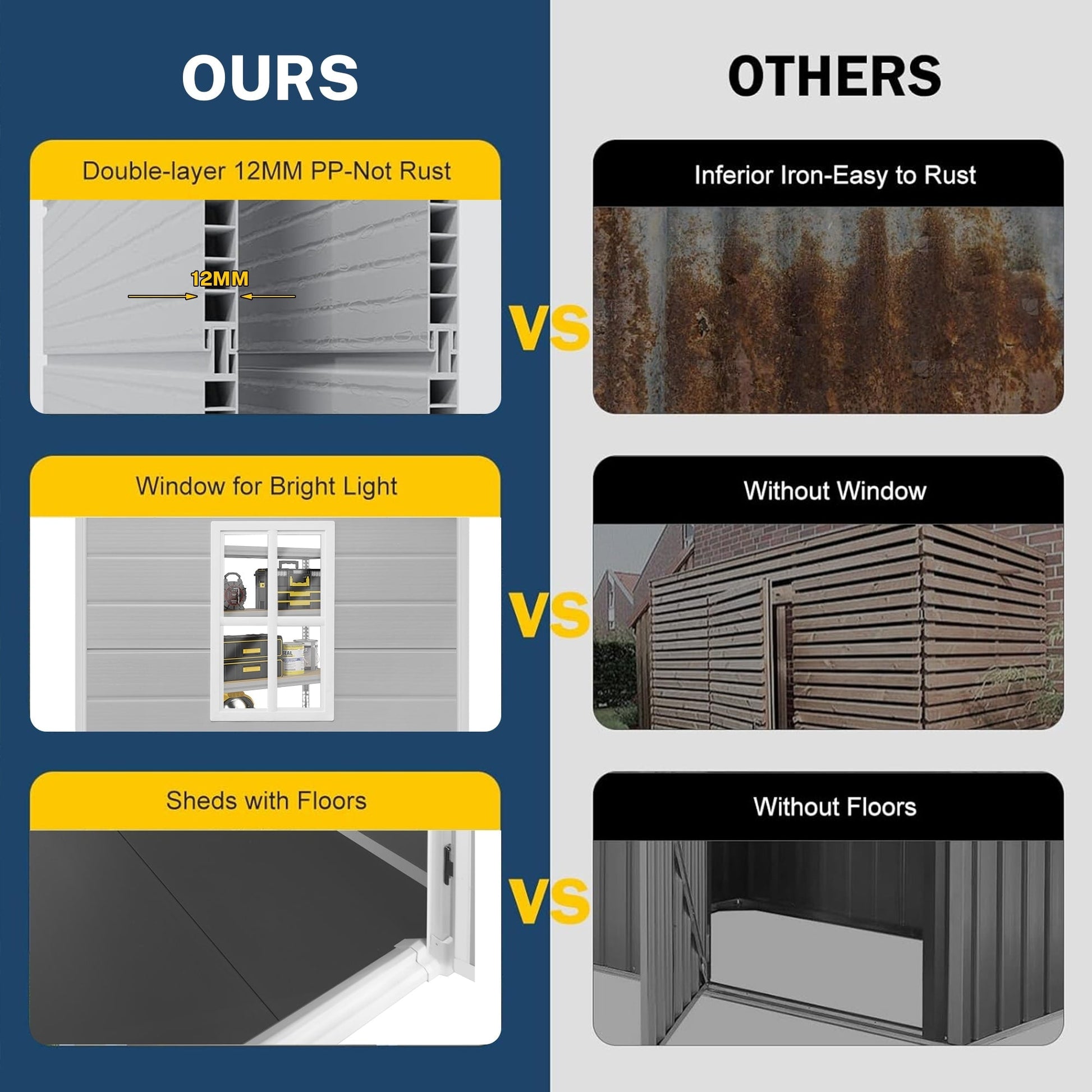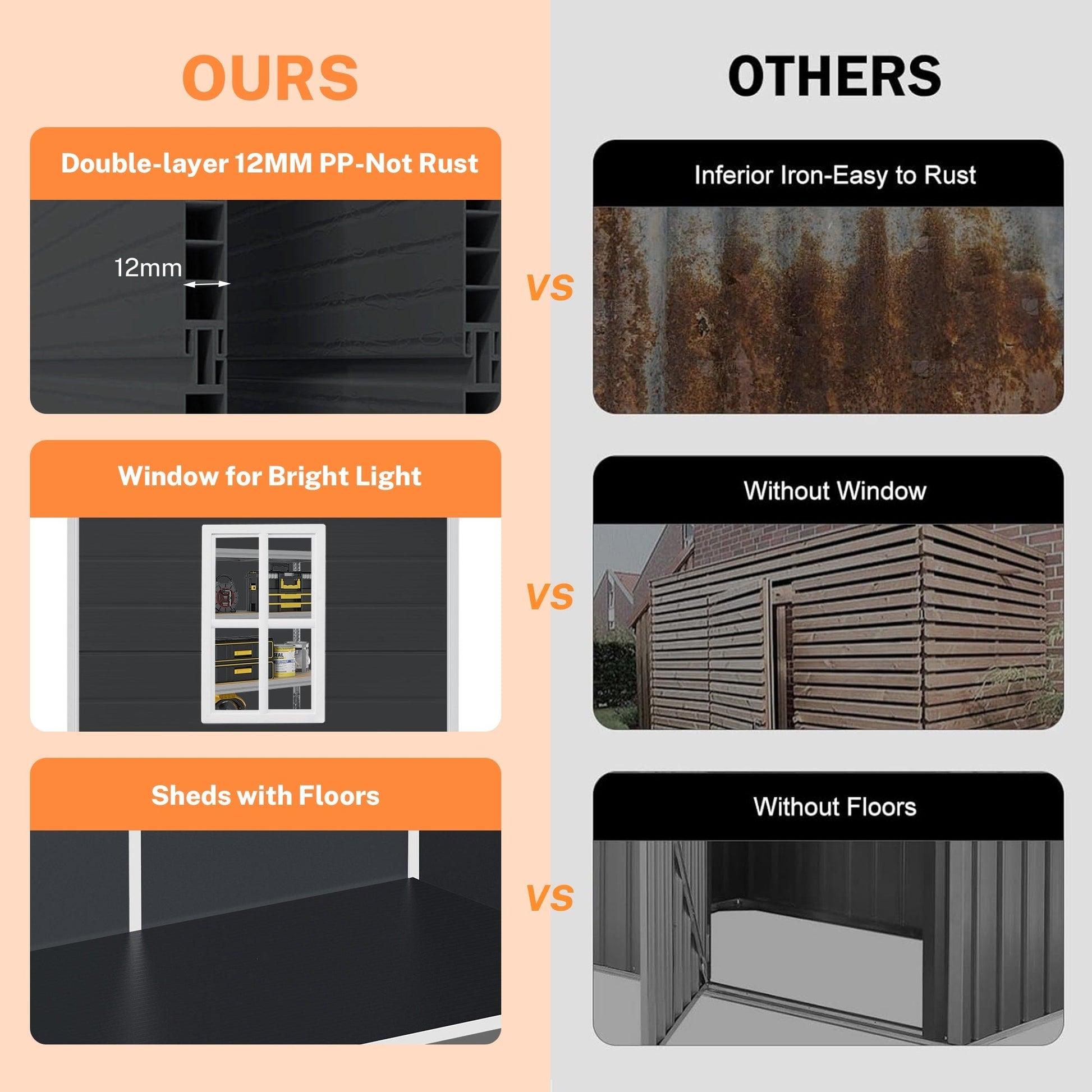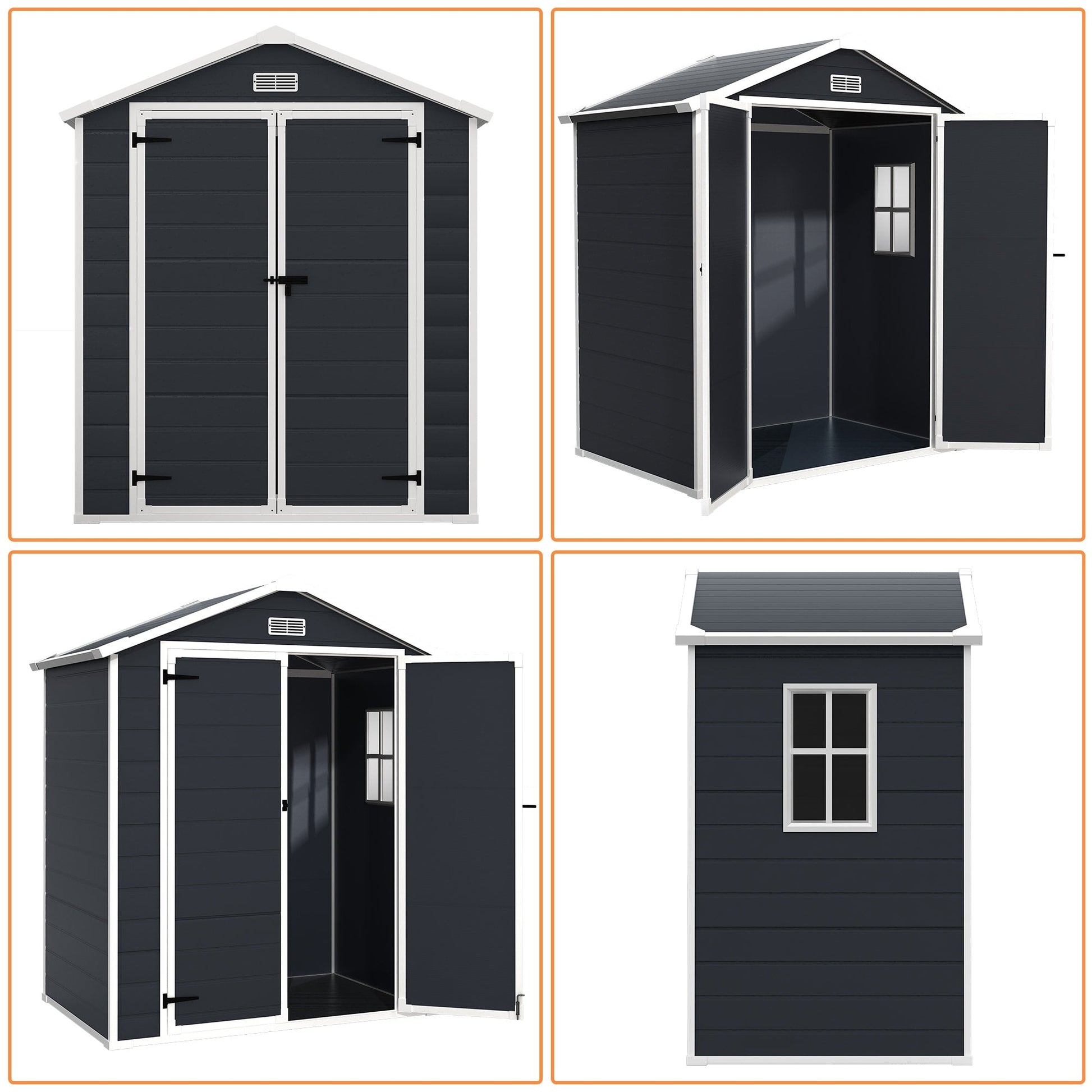 Capannone per attrezzi da esterno in resina resistente alle intemperie, 6 piedi x 4 piedi/6 piedi x 8 piedi/8 piedi x 6 piedi/8 piedi x 10 piedi, con pavimento, Spire Tool Shed