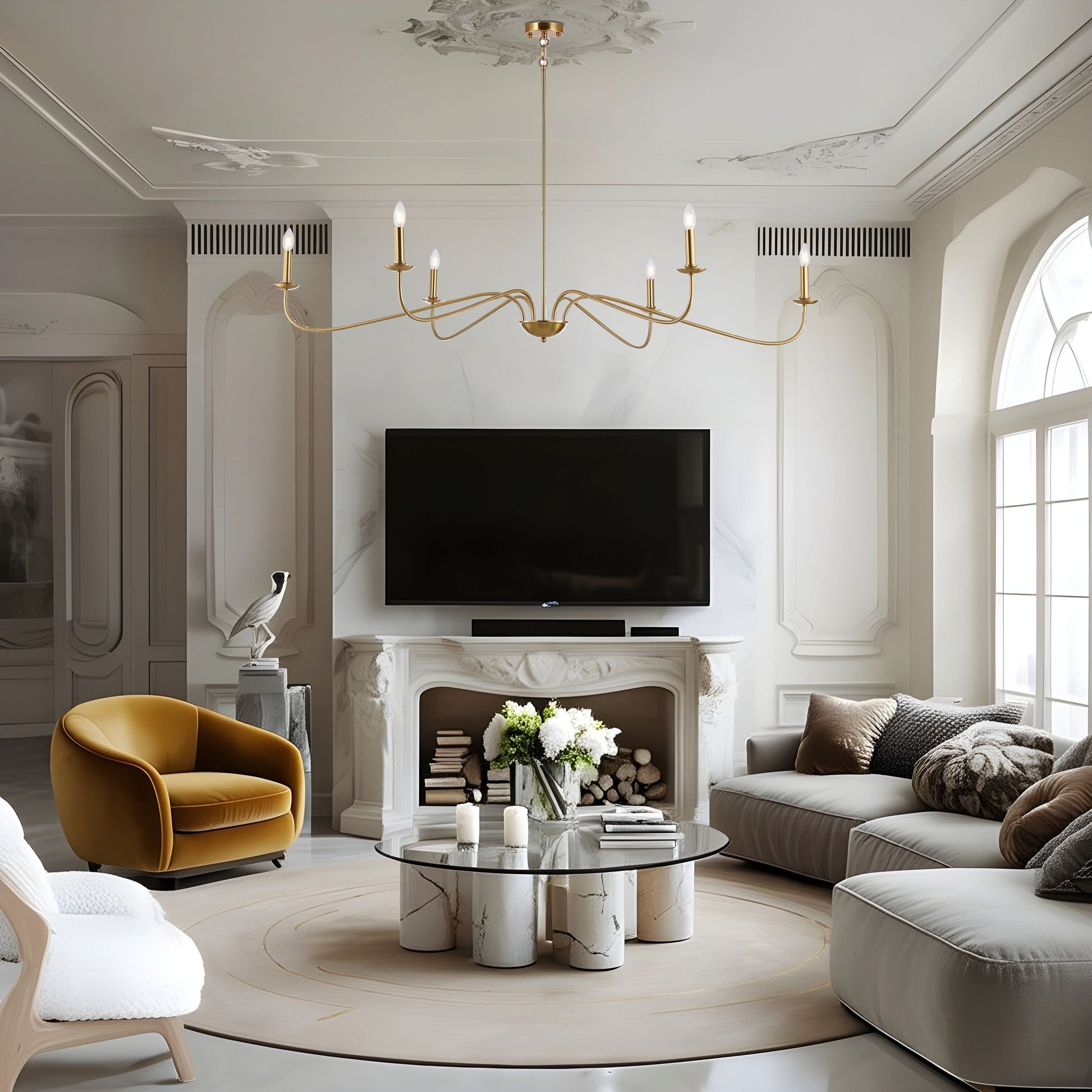 Lampadario minimalista da 64 pollici con 6 luci in nero opaco/oro/cromo - N/D
