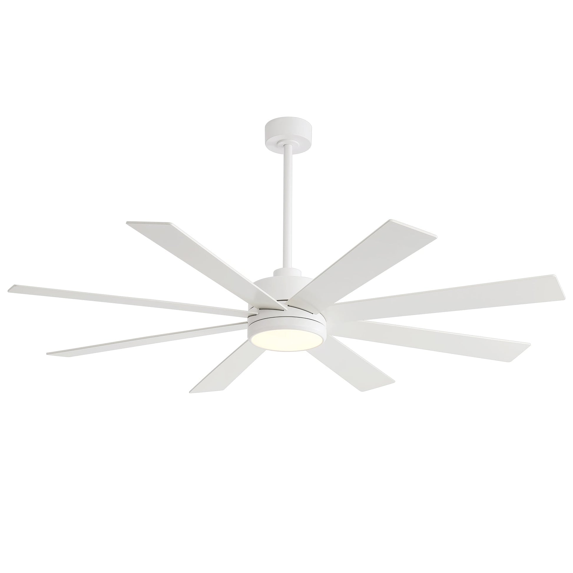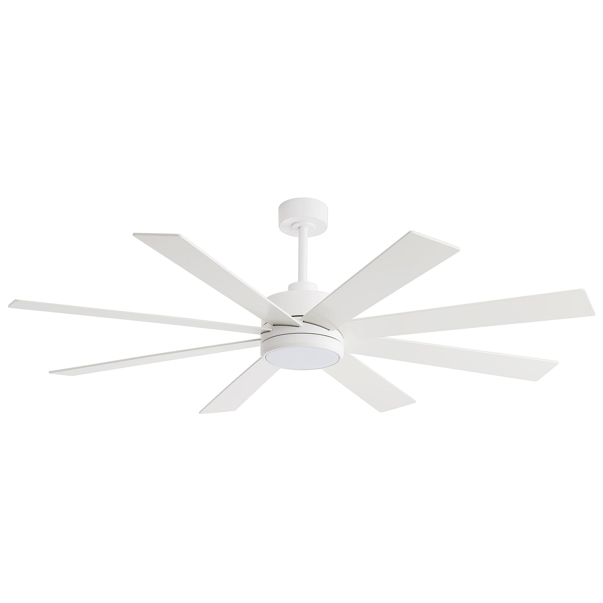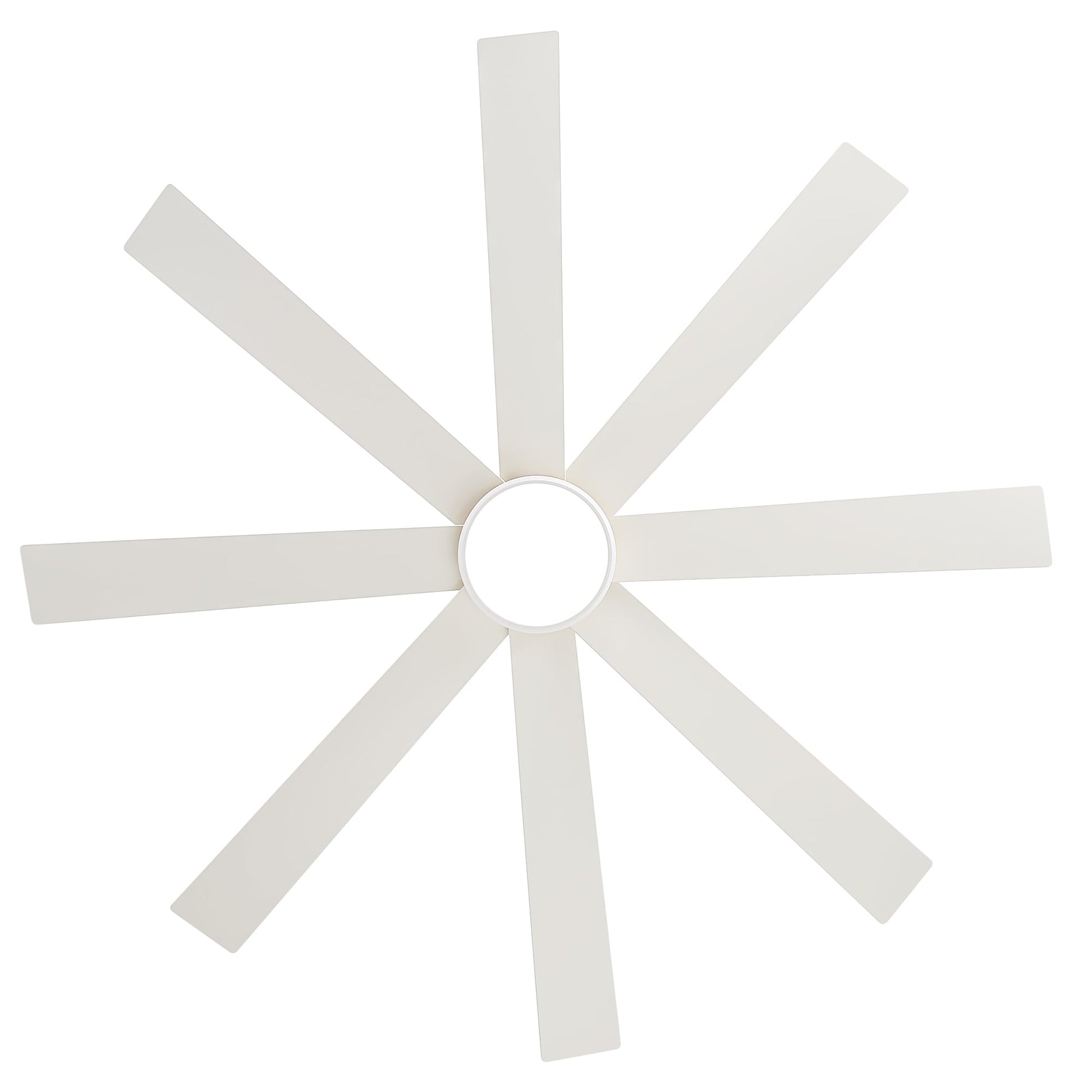 Un design moderno che si adatta bene agli ambienti interni e genera un flusso d'aria considerevole. È un ventilatore molto grande con 8 pale e un'apertura di 165 cm. Questo ventilatore da soffitto, adatto a ambienti asciutti, è realizzato con pale in compensato resistente e metallo. Le 8 eleganti pale sono disponibili in finitura bianca, reversibili e rimovibili. È dotato di un potente motore a corrente continua che funziona in modo fluido e silenzioso, con un'efficienza del 70% superiore rispetto ai motori a corrente alternata. La comoda configurazione a 6 velocità può essere controllata localmente tramite il telecomando incluso.