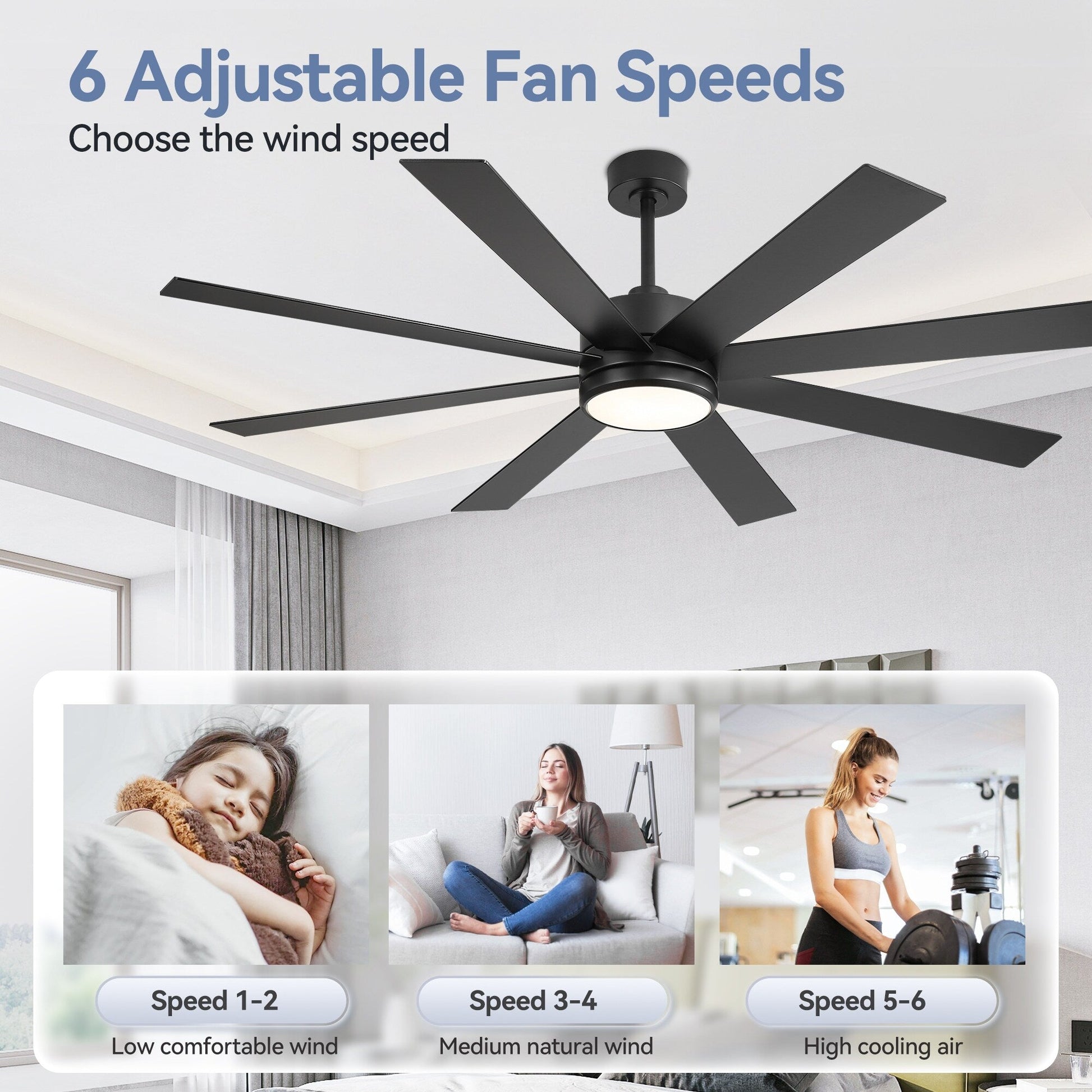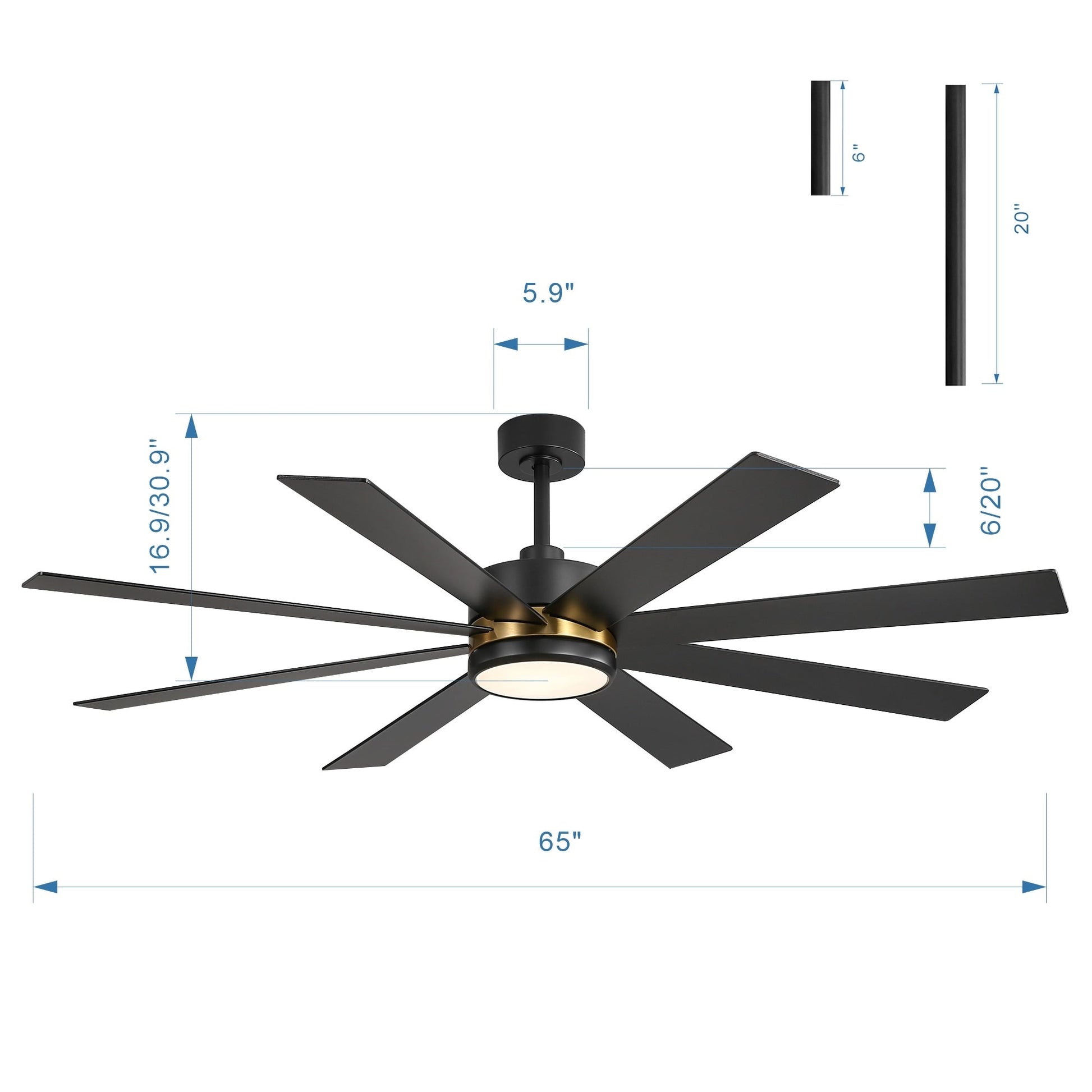Ventilatore da soffitto a LED nero da 65 pollici a 8 pale con luce e telecomando