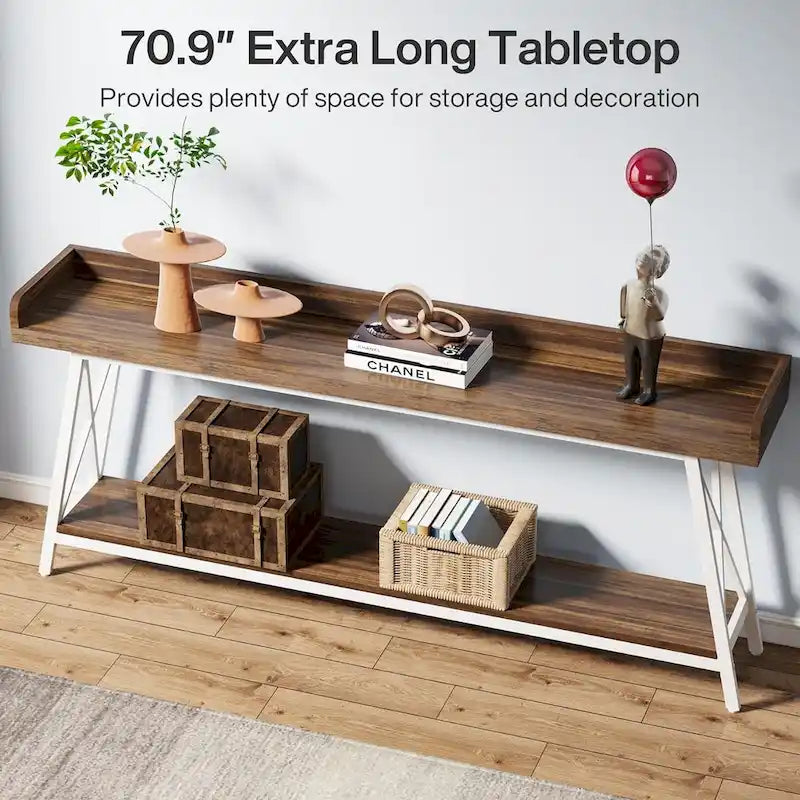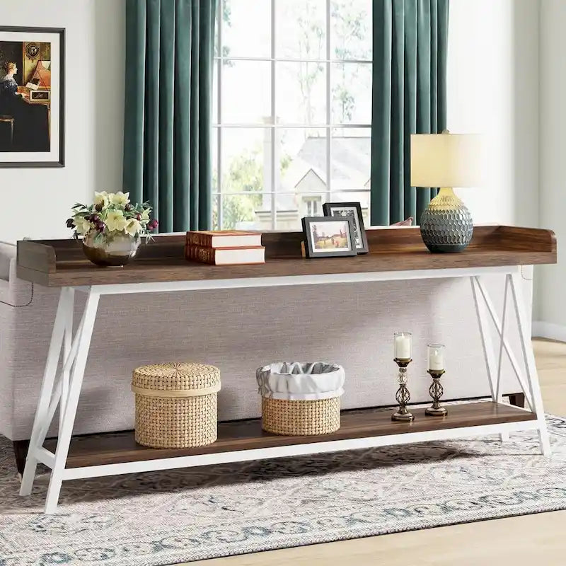 Aggiungi funzionalità e stile al tuo soggiorno con questo tavolo consolle extra lungo da 70,9 pollici dietro il divano.