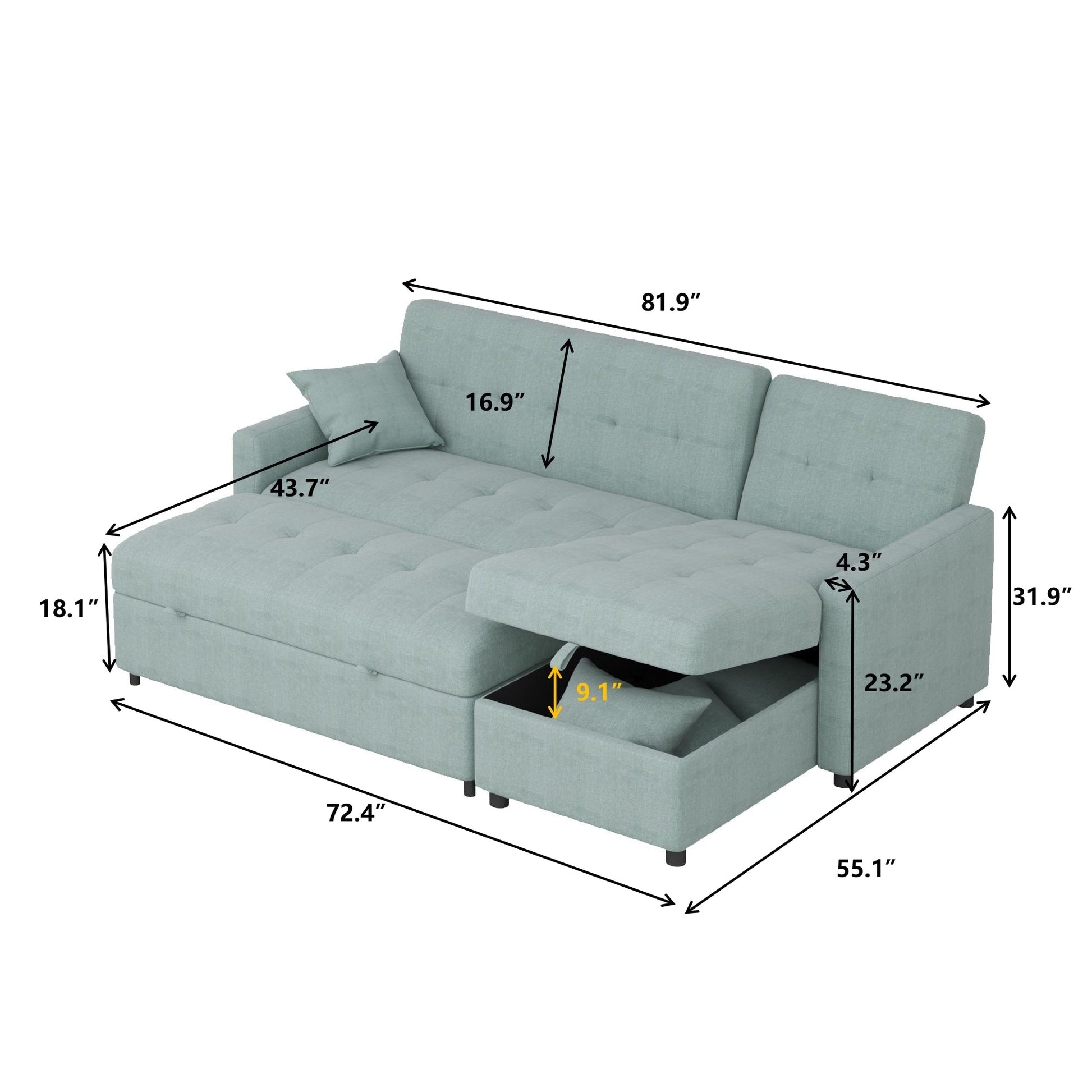 Divano letto reversibile e chaise longue da 82'' di larghezza