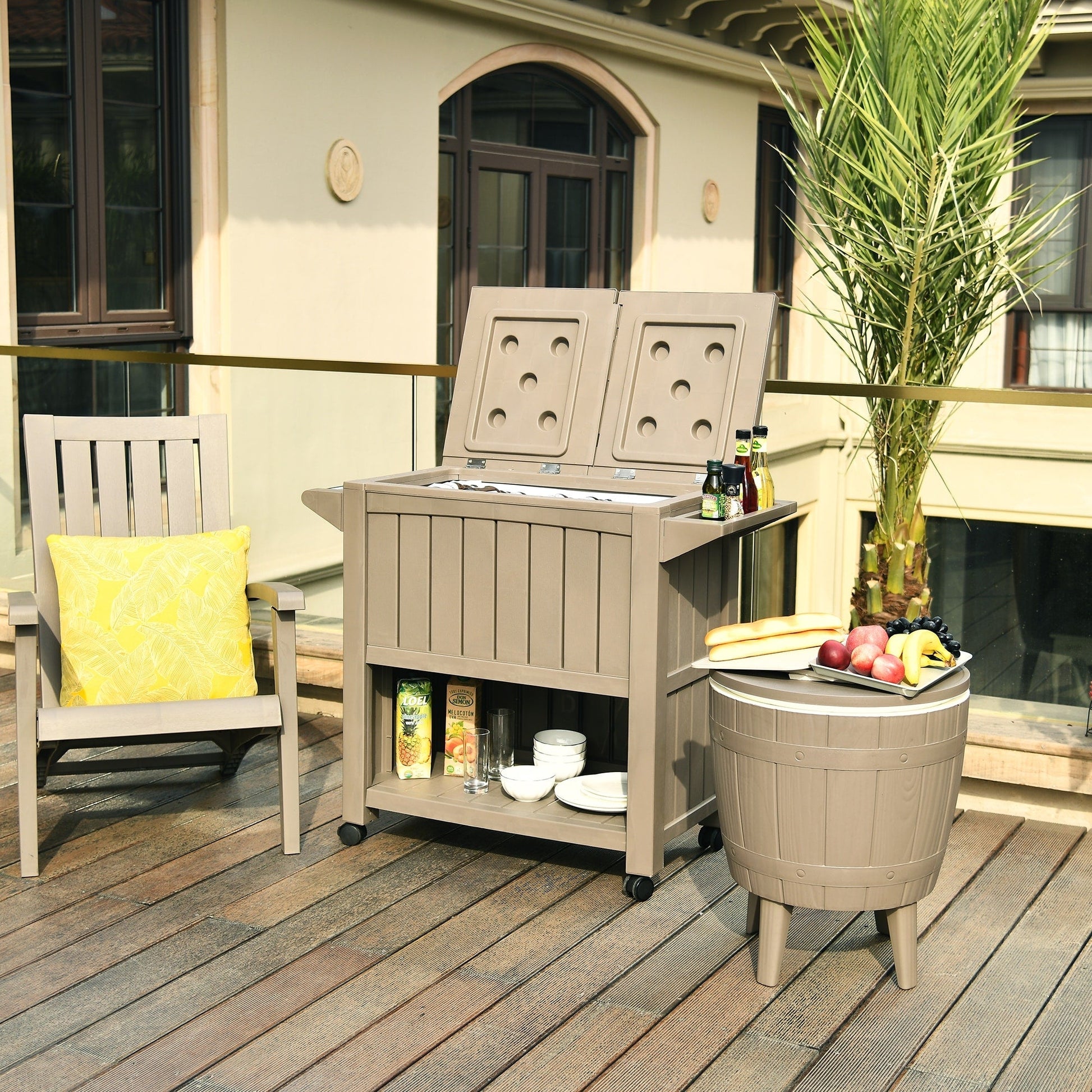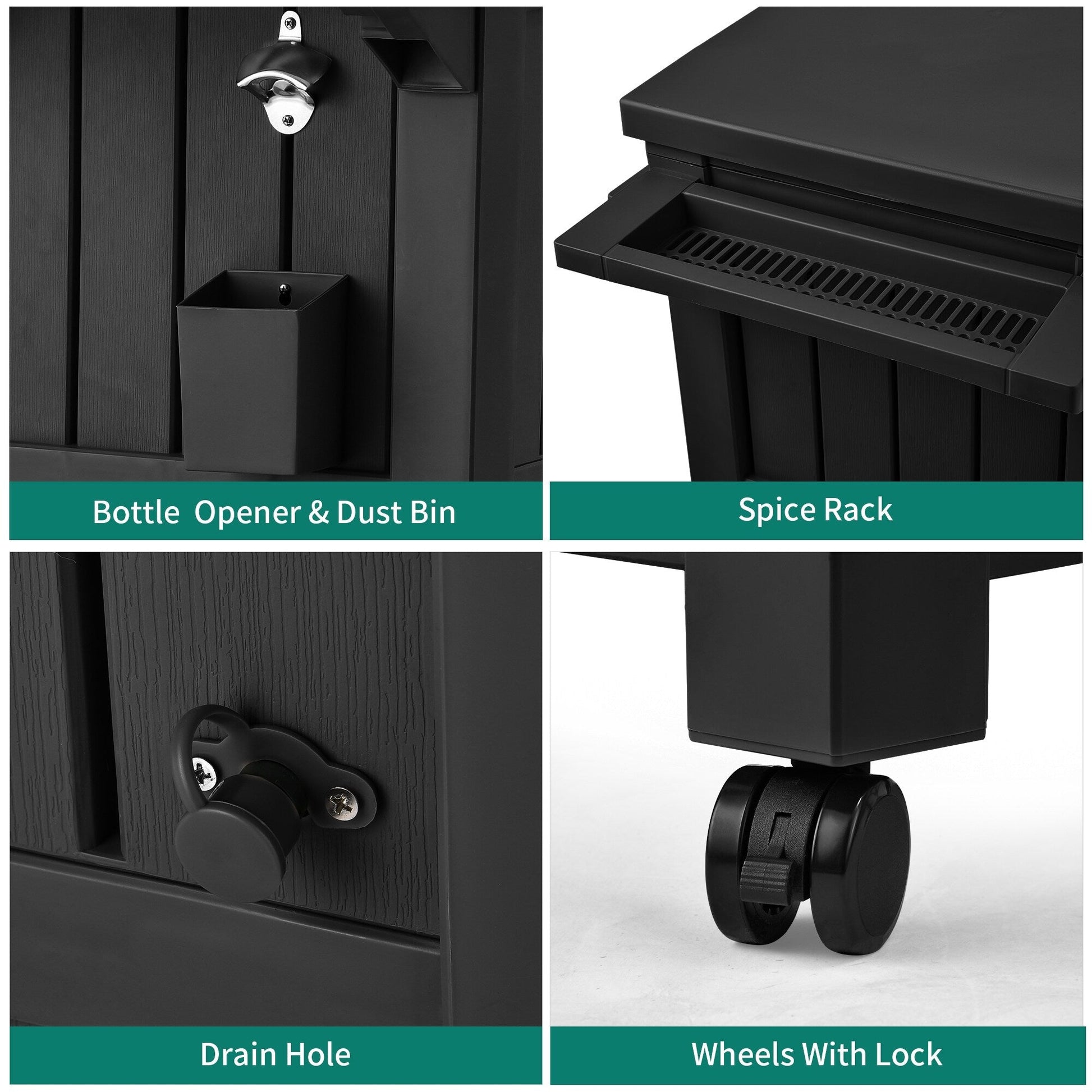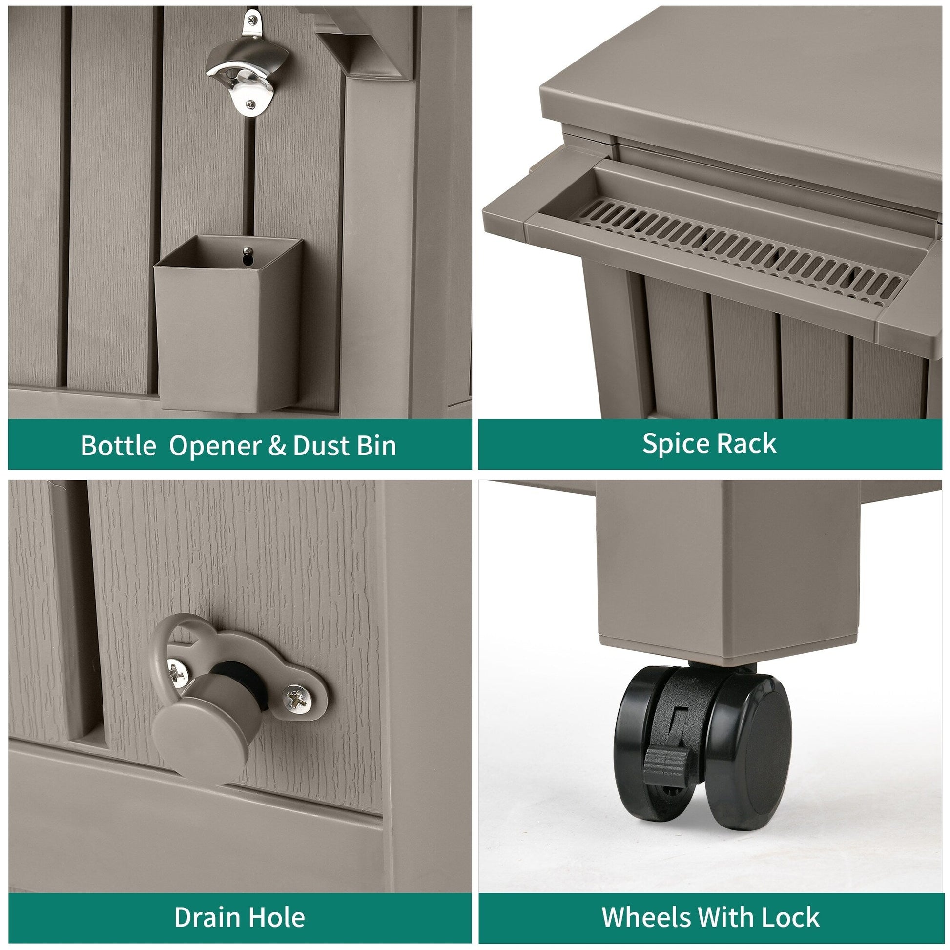 GRANDE CAPACITÀ - Questo carrello frigo da esterno è dotato di un secchiello per il ghiaccio da 85 qt/21 galloni e di uno spazio aperto per raffreddare le bevande per ore. ACCESSORI MULTIFUNZIONALI - Presenta design versatili e distinti, tra cui apribottiglie, cestino abbinato, porta spezie e spazio di archiviazione inferiore per comodità, nonché il sacchetto del ghiaccio in PVC con fori di drenaggio per sostituire facilmente acqua o cubetti di ghiaccio. ROTELLE BLOCCANTI - Il contenitore per ghiaccio con ruote è dotato di 4 rotelle multidirezionali, 2 delle quali sono bloccabili per tenere il frigorifero in posizione per una maggiore stabilità su superfici irregolari. MONTAGGIO RAPIDO - Questo carrello per bevande da esterno è realizzato in resina riciclabile e durevole per una facile manutenzione; basta seguire le istruzioni incluse per una facile installazione. MATERIALI DI PRIMA QUALITÀ - I nostri carrelli frigo con ruote sono realizzati in resina resistente a tutte le intemperie con una trama in legno naturale per una grande durata, protezione contro sbucciature e ammaccature, un aspetto elegante e un tocco minimo.