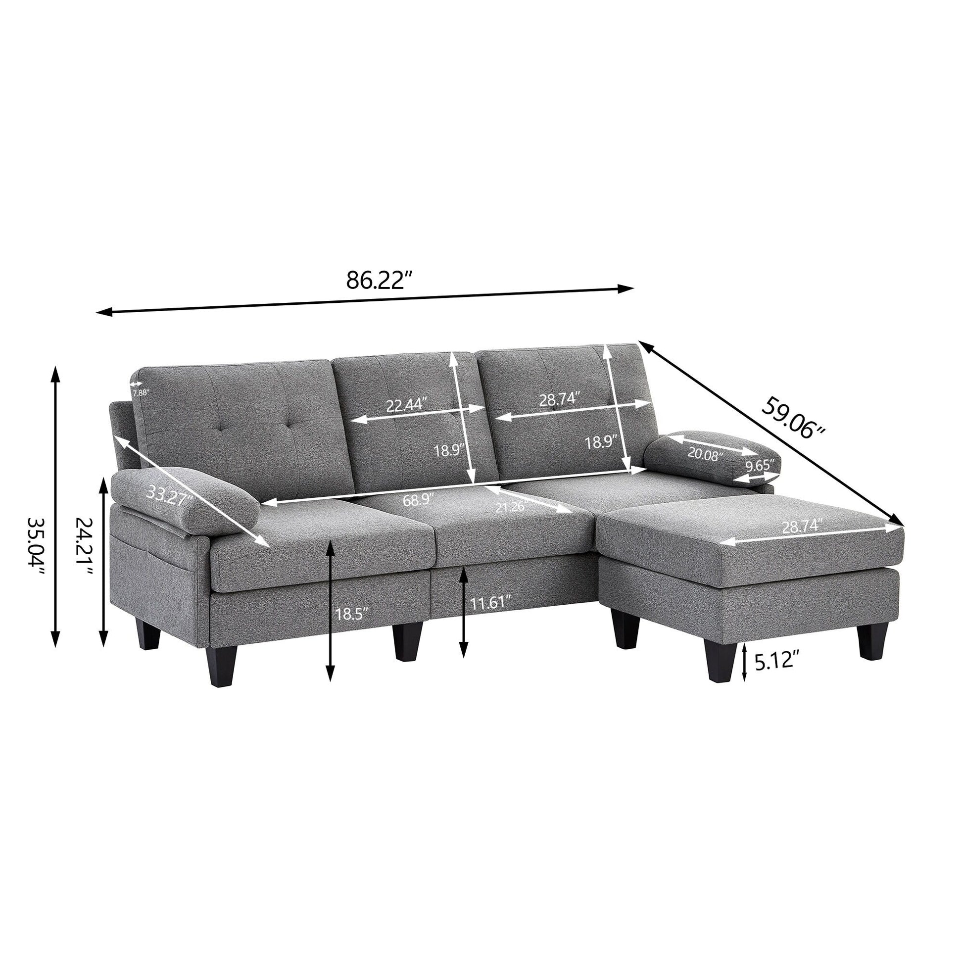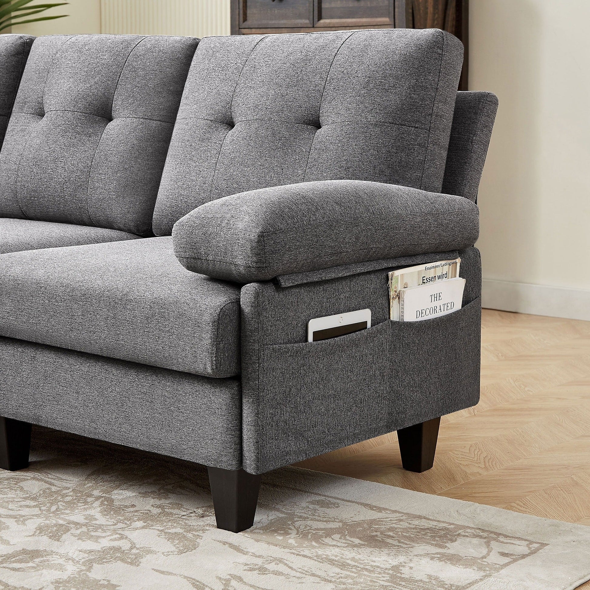 Divano componibile a L da 86,22 pollici con tasche portaoggetti laterali