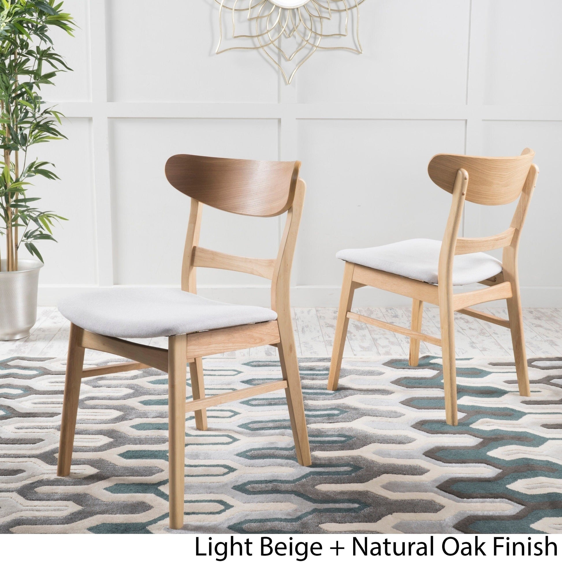 Sedia da pranzo Abrielle in legno di caucciù imbottita in stile moderno di metà secolo (set di 2) di Christopher Knight Home