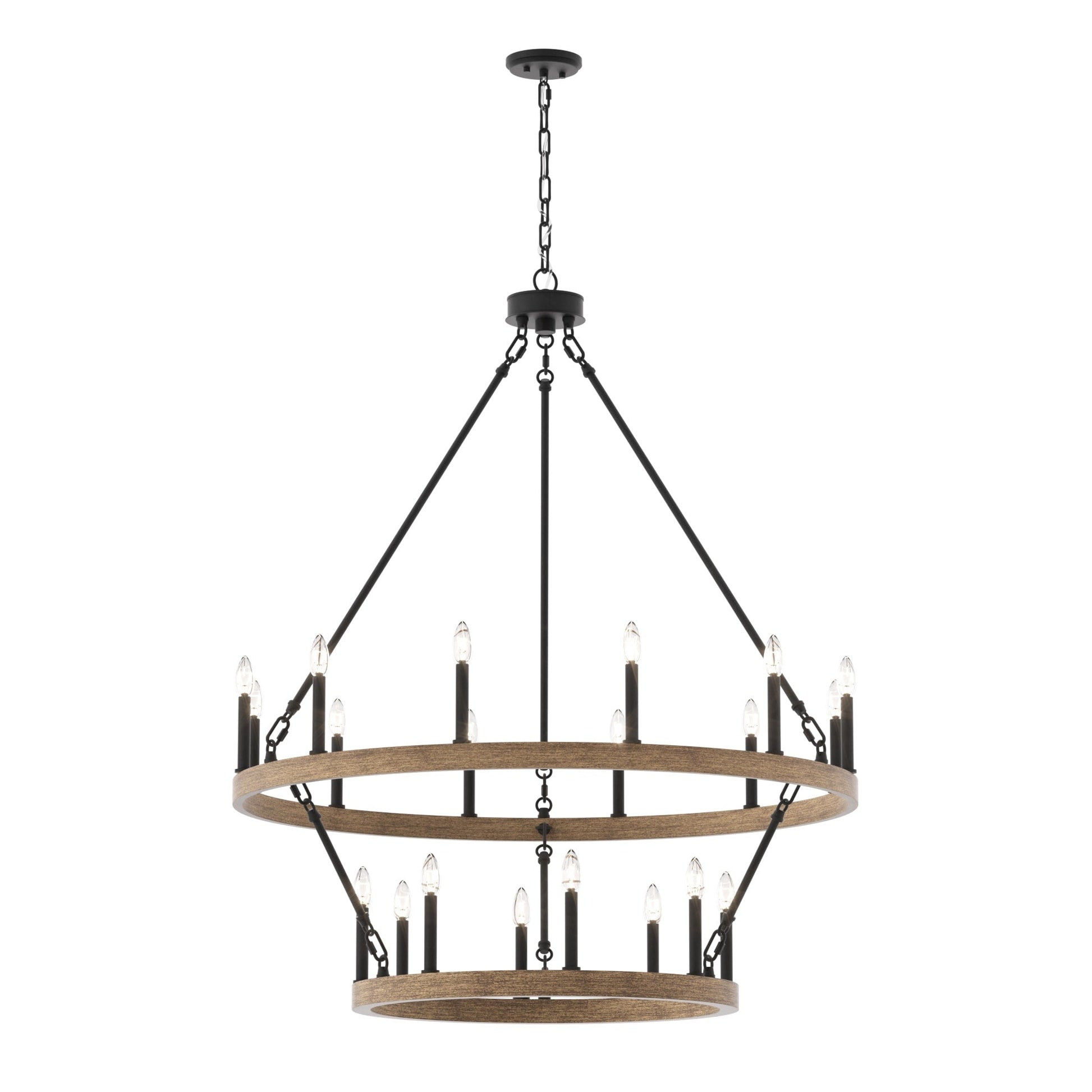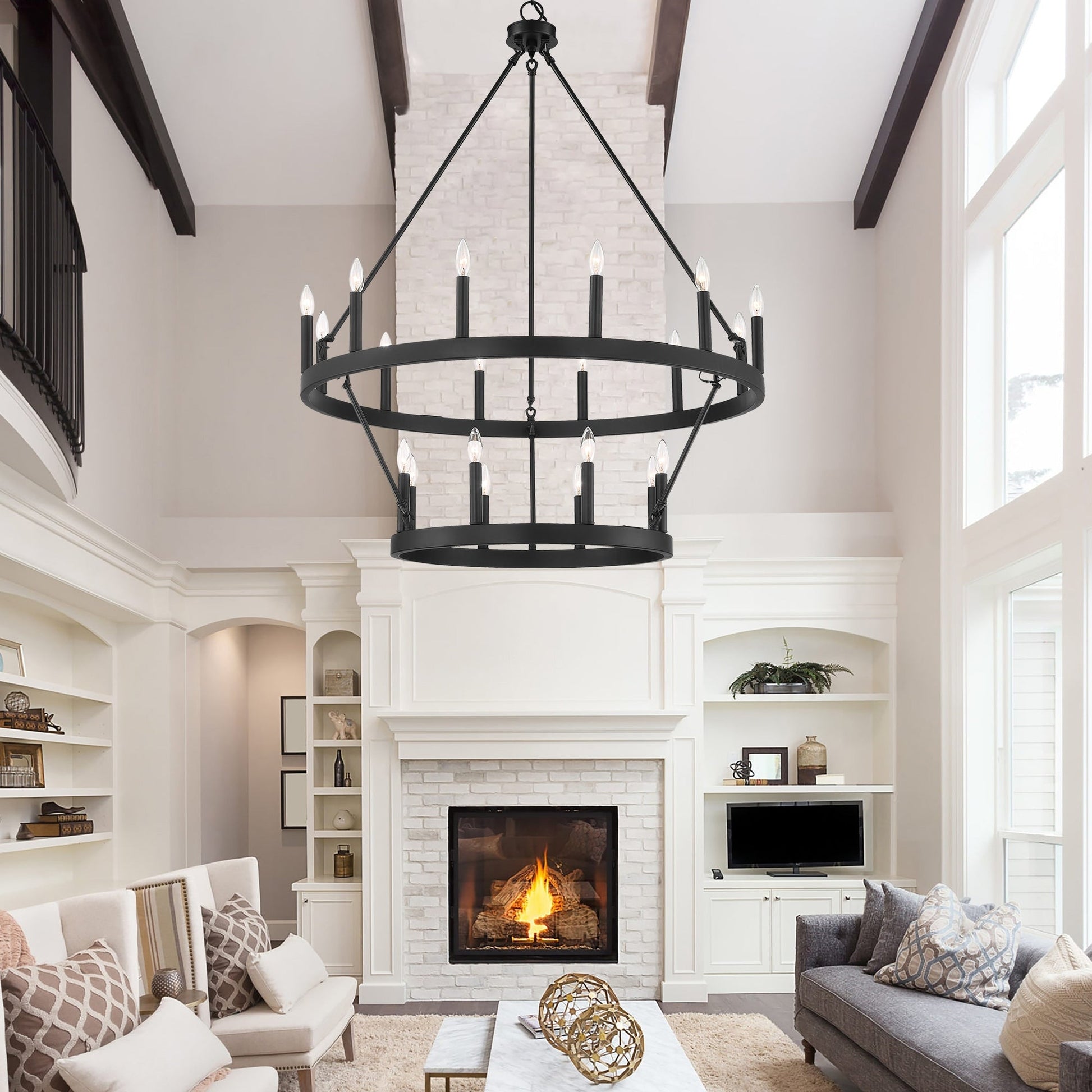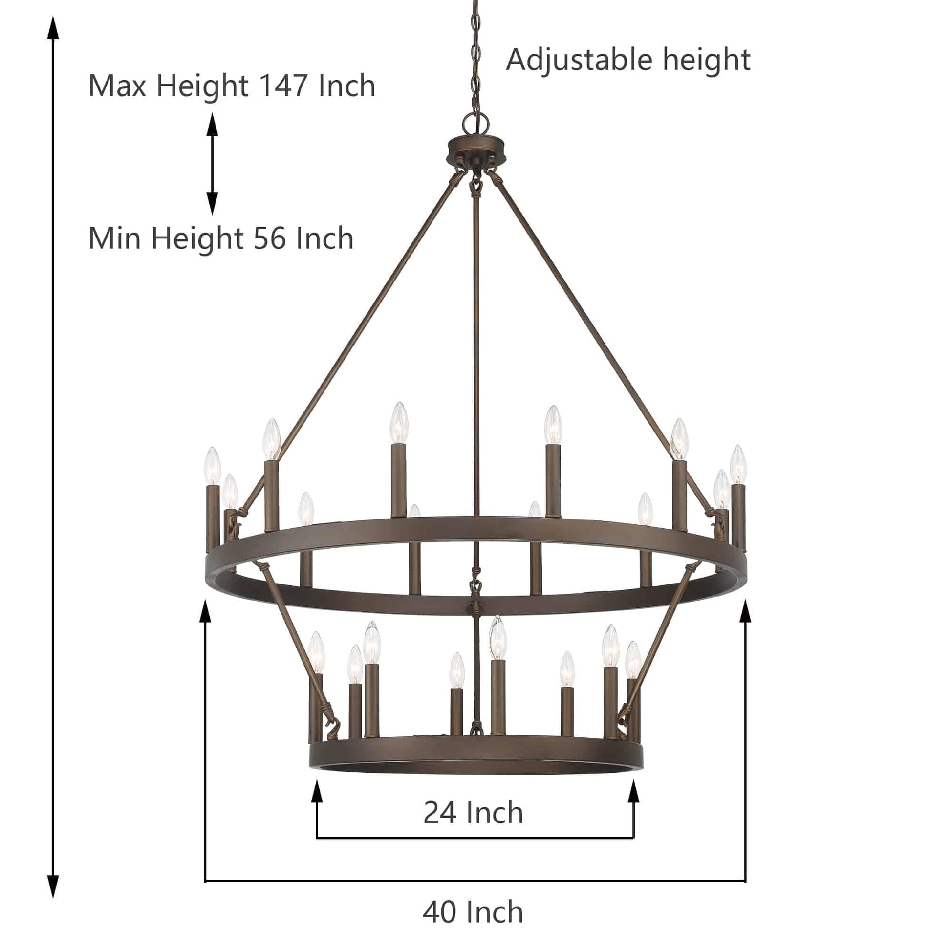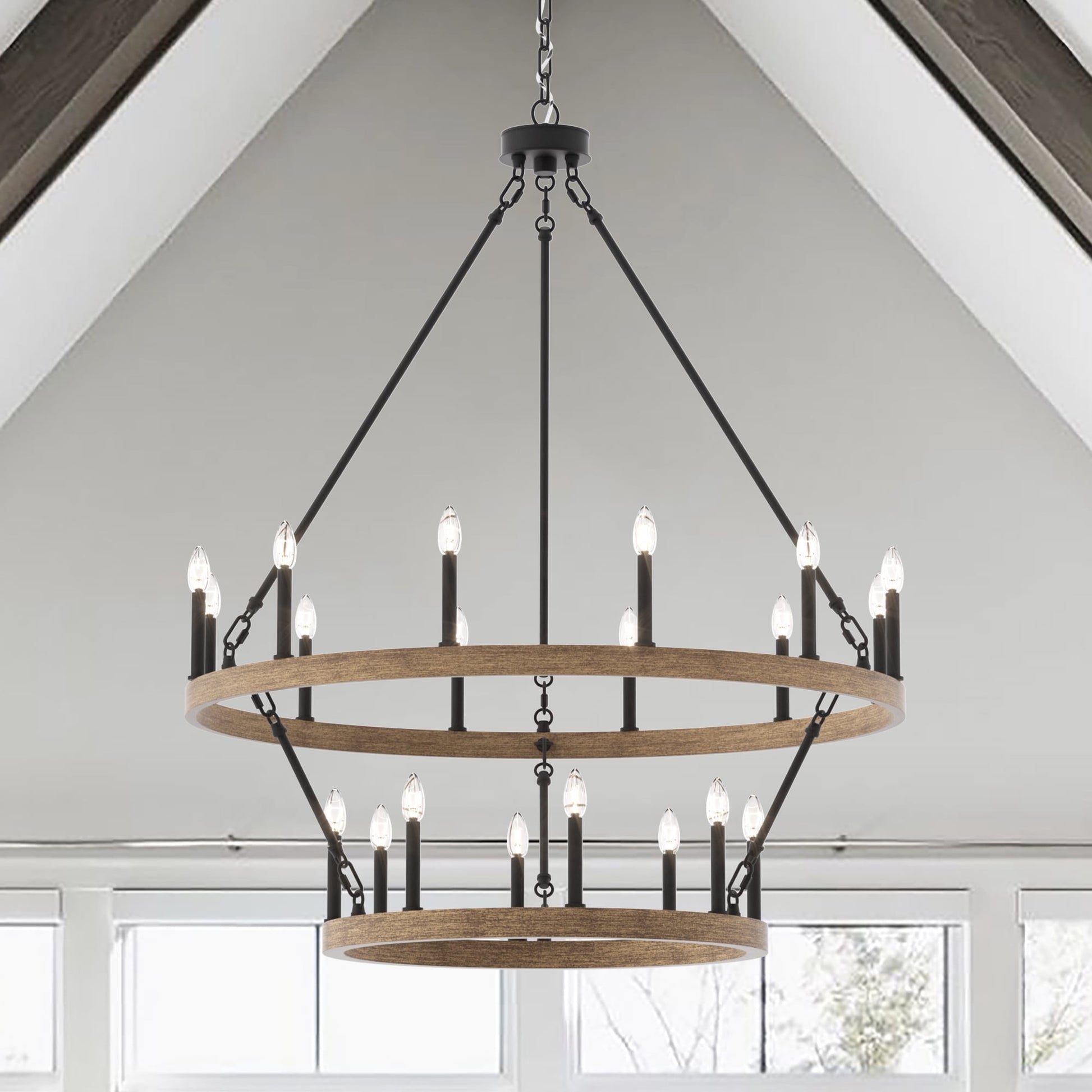 Illumina il tuo spazio abitativo con il lampadario rustico a forma di ruota di carro grande, realizzato in acciaio e disponibile in una varietà di colori, questo lampadario è resistente e aggiunge fascino a una varietà di stili. Con una ruota di carro a due livelli e venti candelabri, è perfetto per illuminare completamente un ampio spazio come il soggiorno, la sala da pranzo e un ampio ingresso/foyer a due piani. Personalizza il tuo spazio con lampadine a candela per un look vintage in stile francese o lampadine a stelo per un tocco moderno.