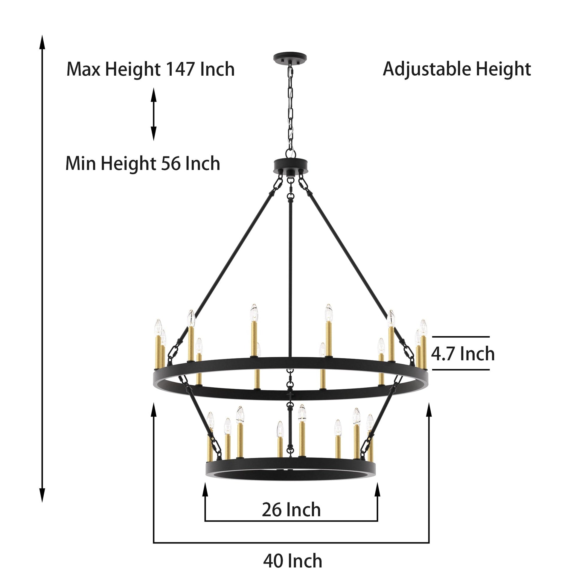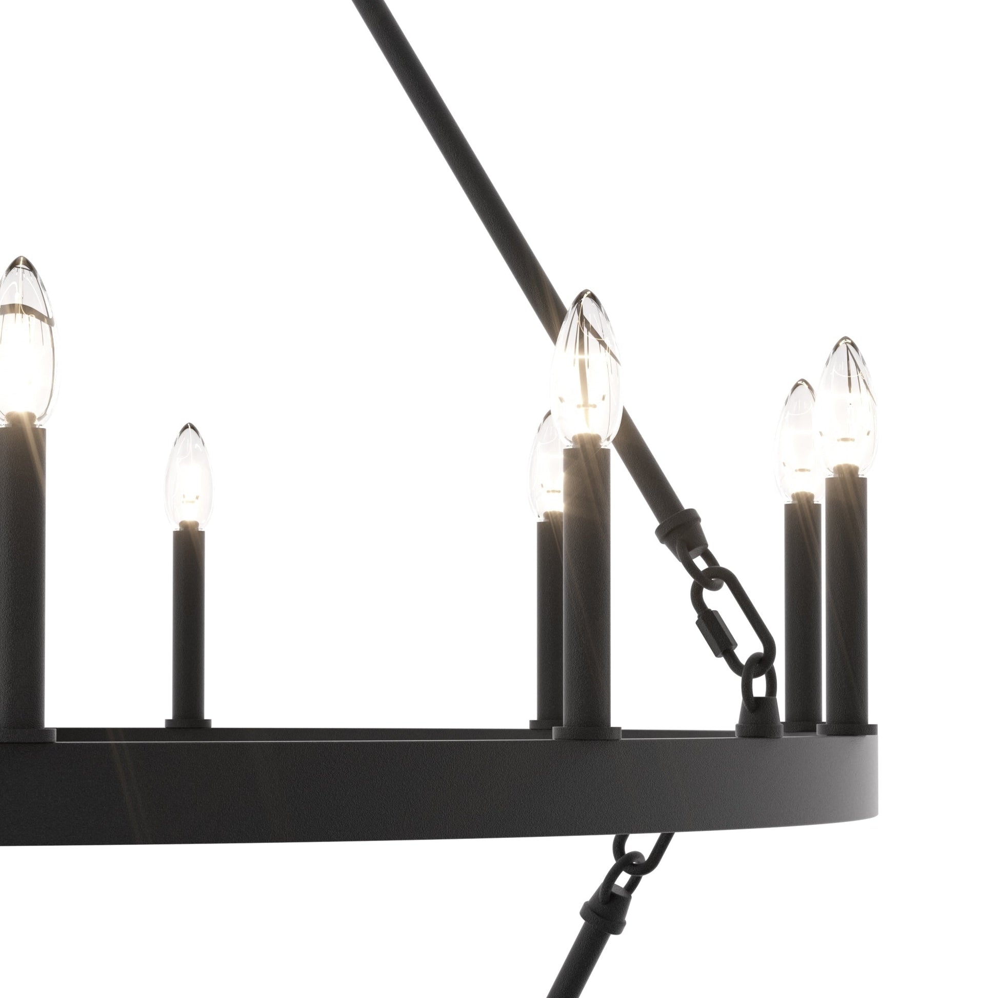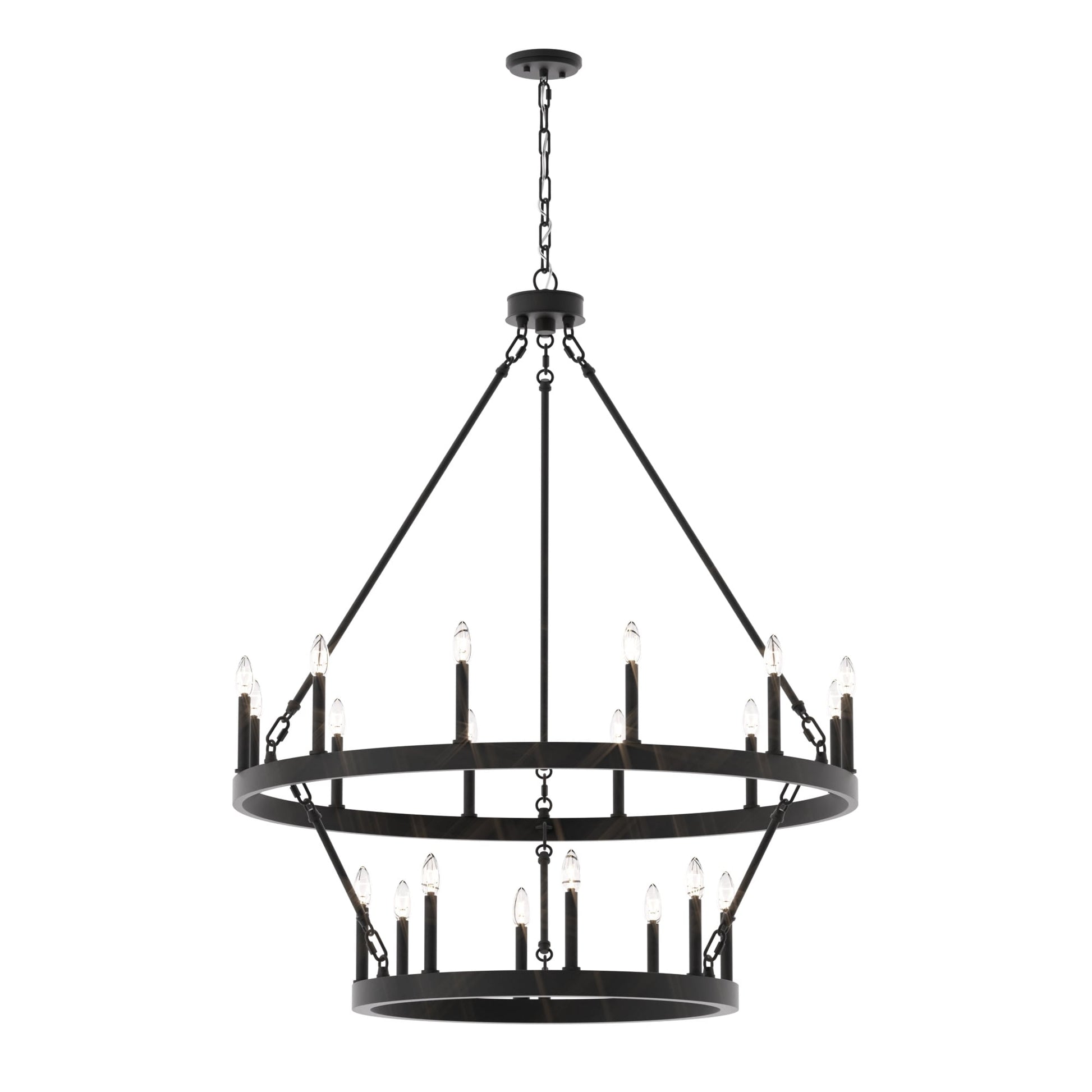 Illumina il tuo spazio abitativo con il lampadario rustico a forma di ruota di carro grande, realizzato in acciaio e disponibile in una varietà di colori, questo lampadario è resistente e aggiunge fascino a una varietà di stili. Con una ruota di carro a due livelli e venti candelabri, è perfetto per illuminare completamente un ampio spazio come il soggiorno, la sala da pranzo e un ampio ingresso/foyer a due piani. Personalizza il tuo spazio con lampadine a candela per un look vintage in stile francese o lampadine a stelo per un tocco moderno.