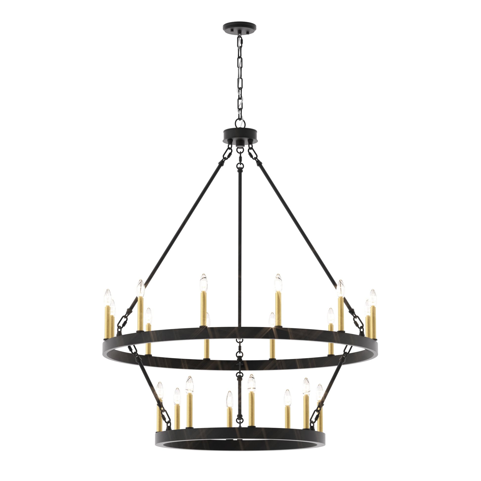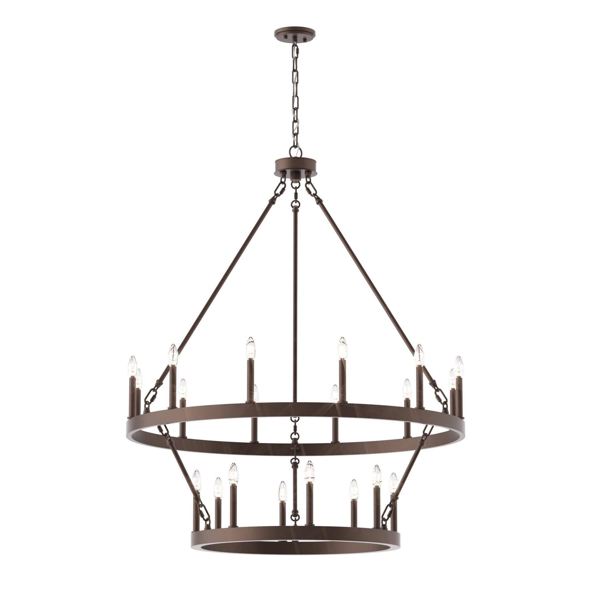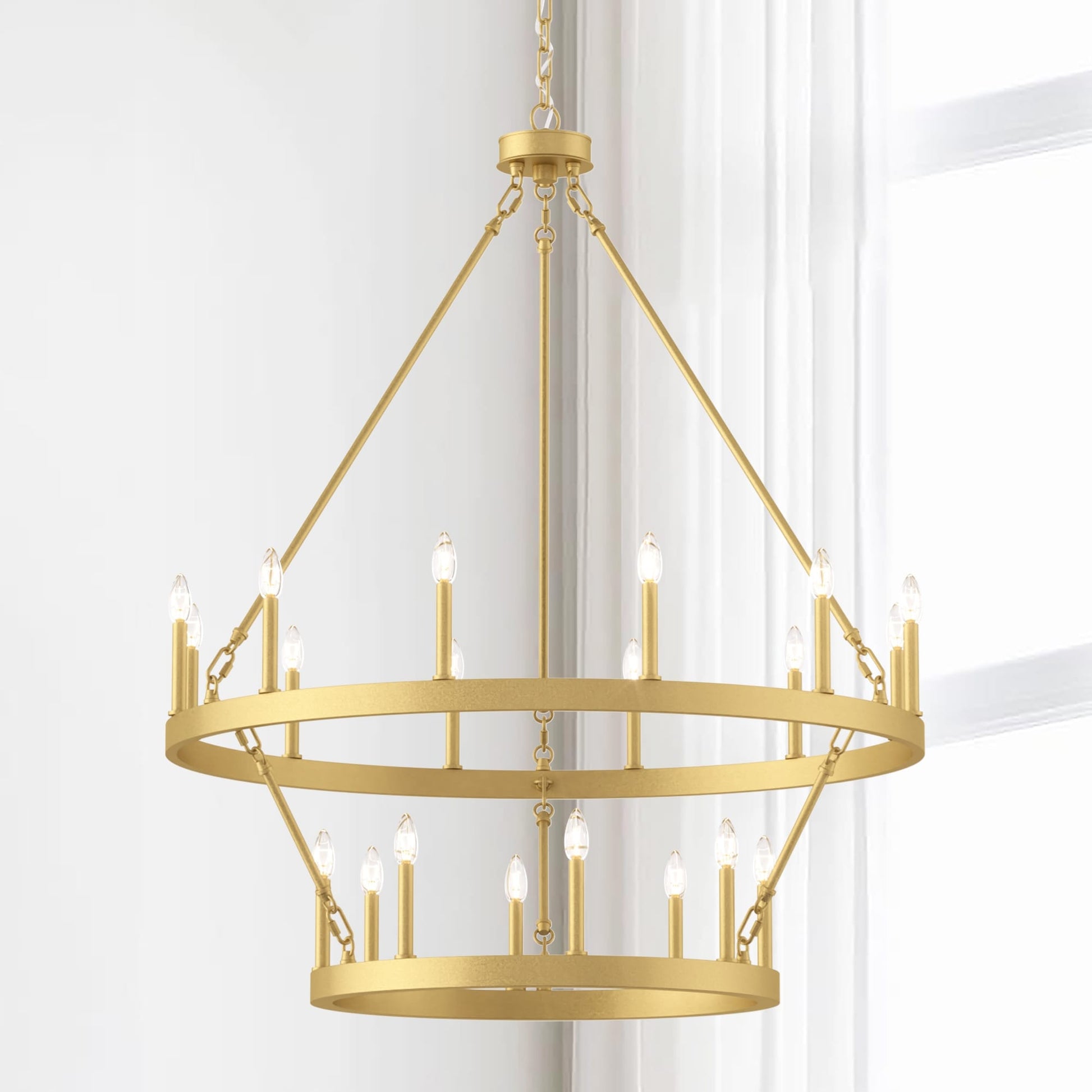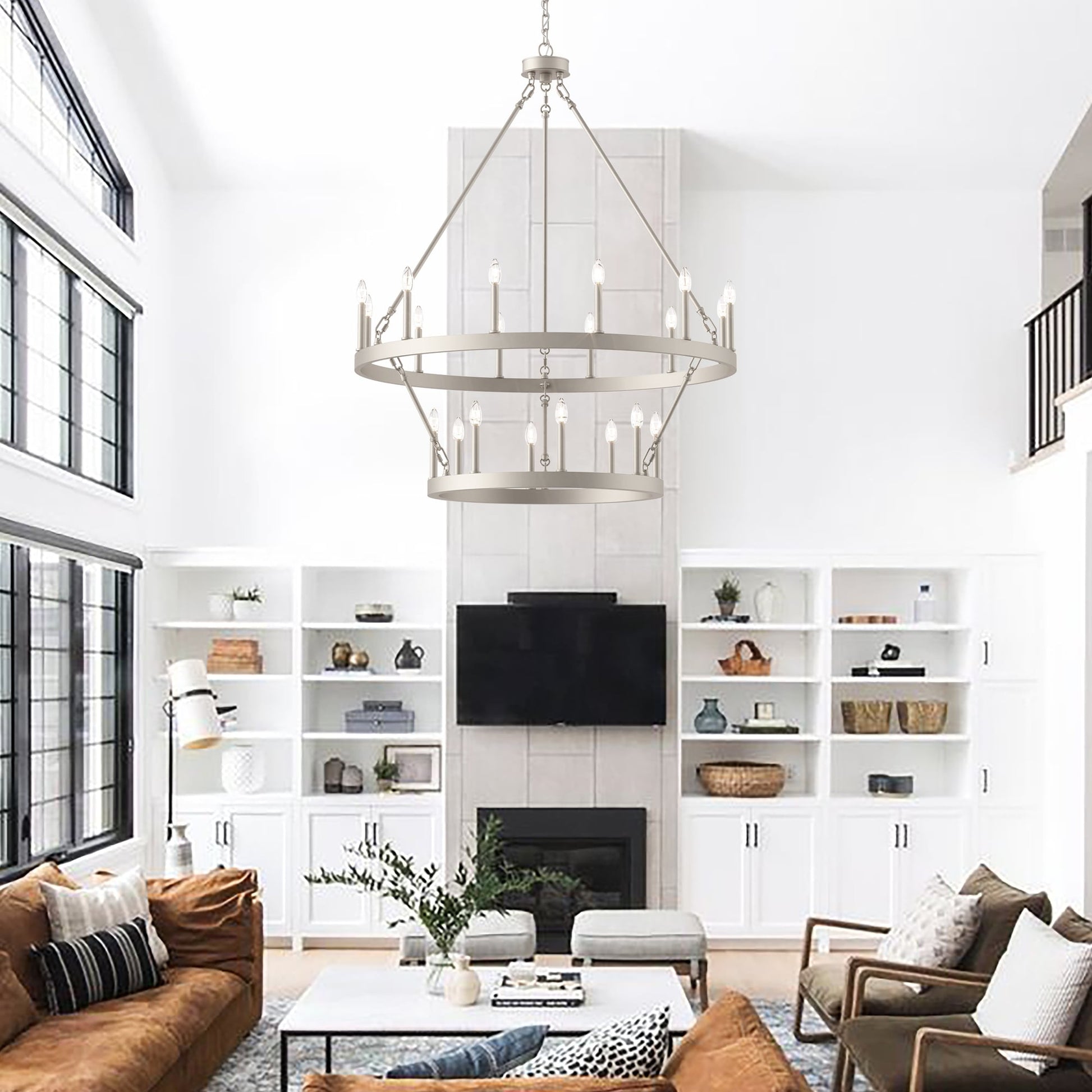 Illumina il tuo spazio abitativo con il lampadario rustico a forma di ruota di carro grande, realizzato in acciaio e disponibile in una varietà di colori, questo lampadario è resistente e aggiunge fascino a una varietà di stili. Con una ruota di carro a due livelli e venti candelabri, è perfetto per illuminare completamente un ampio spazio come il soggiorno, la sala da pranzo e un ampio ingresso/foyer a due piani. Personalizza il tuo spazio con lampadine a candela per un look vintage in stile francese o lampadine a stelo per un tocco moderno.