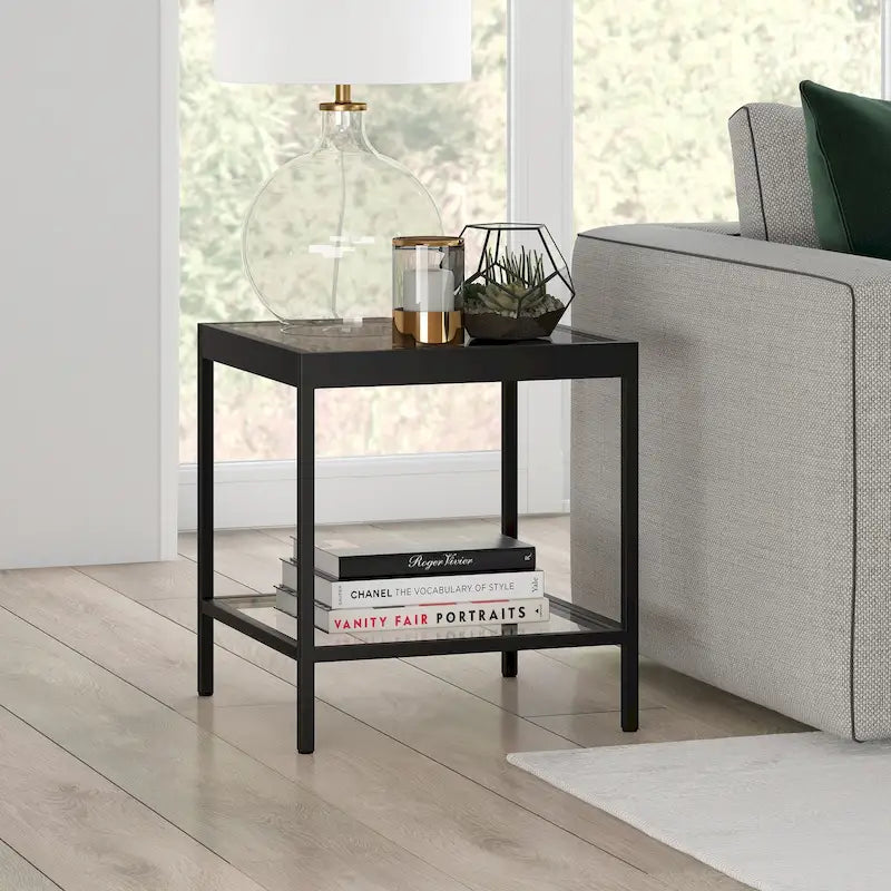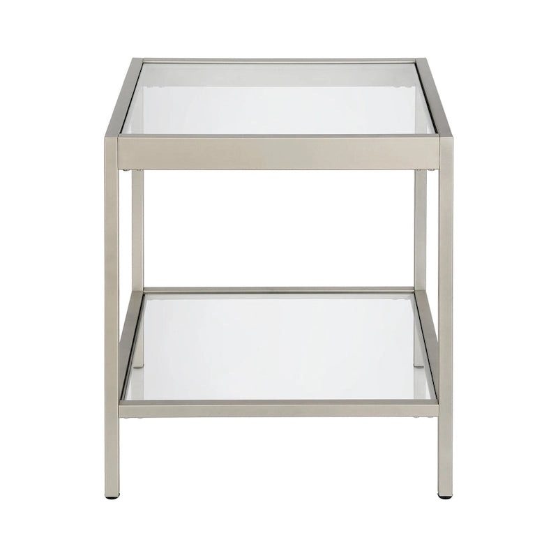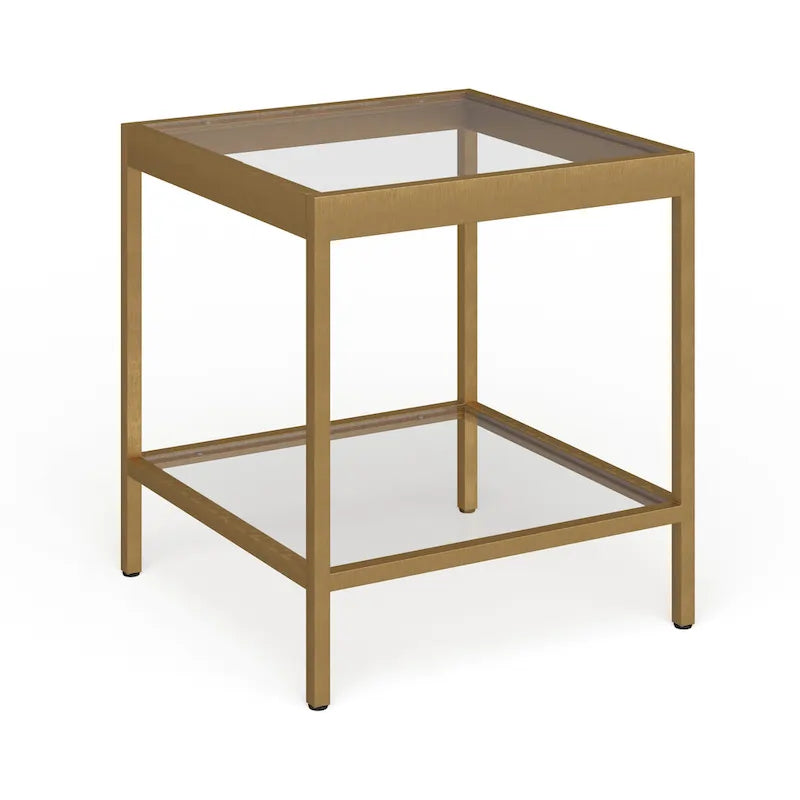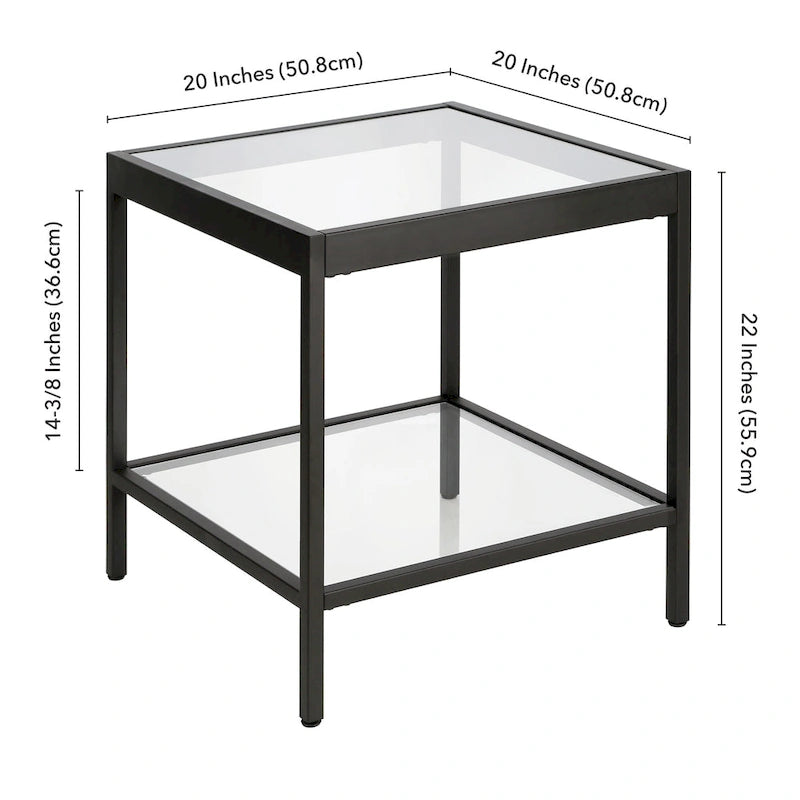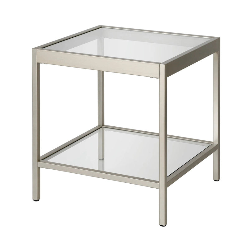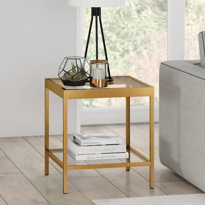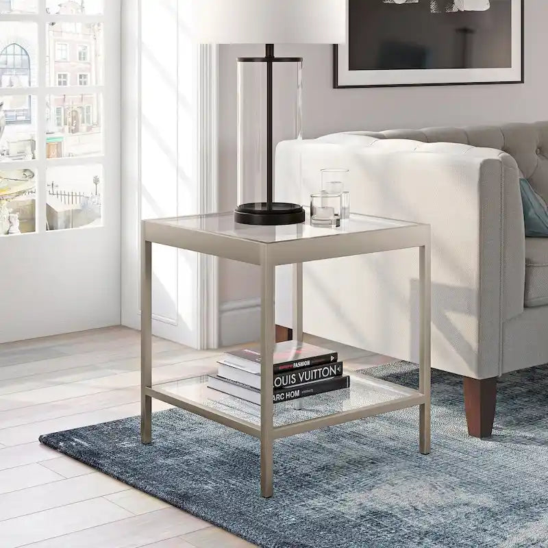 Aggiungi un tocco di moderna eleganza alla tua zona giorno con il tavolino quadrato Alexis Modern in metallo e vetro. Questo tavolino minimalista è perfetto da posizionare accanto a un divano e un tavolino da caffè, offrendo un'aggiunta elegante e funzionale a qualsiasi spazio. La resistente struttura in metallo è disponibile in tre finiture: ottone glamour, nichel e bronzo annerito. Il piano in vetro e il ripiano inferiore offrono ampio spazio per esporre decorazioni o riporre oggetti essenziali. Il montaggio è semplice e la pulizia è semplice con un panno morbido e asciutto. Con una capacità di carico di 13,6 kg, questo tavolino quadrato è pratico ed elegante.
