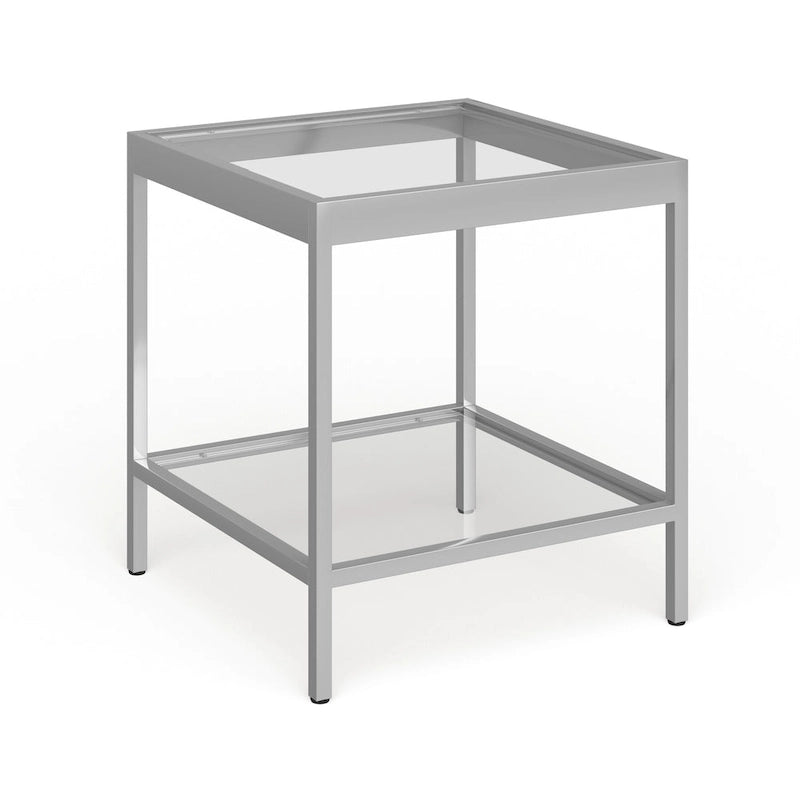 Tavolino quadrato moderno in metallo e vetro Alexis