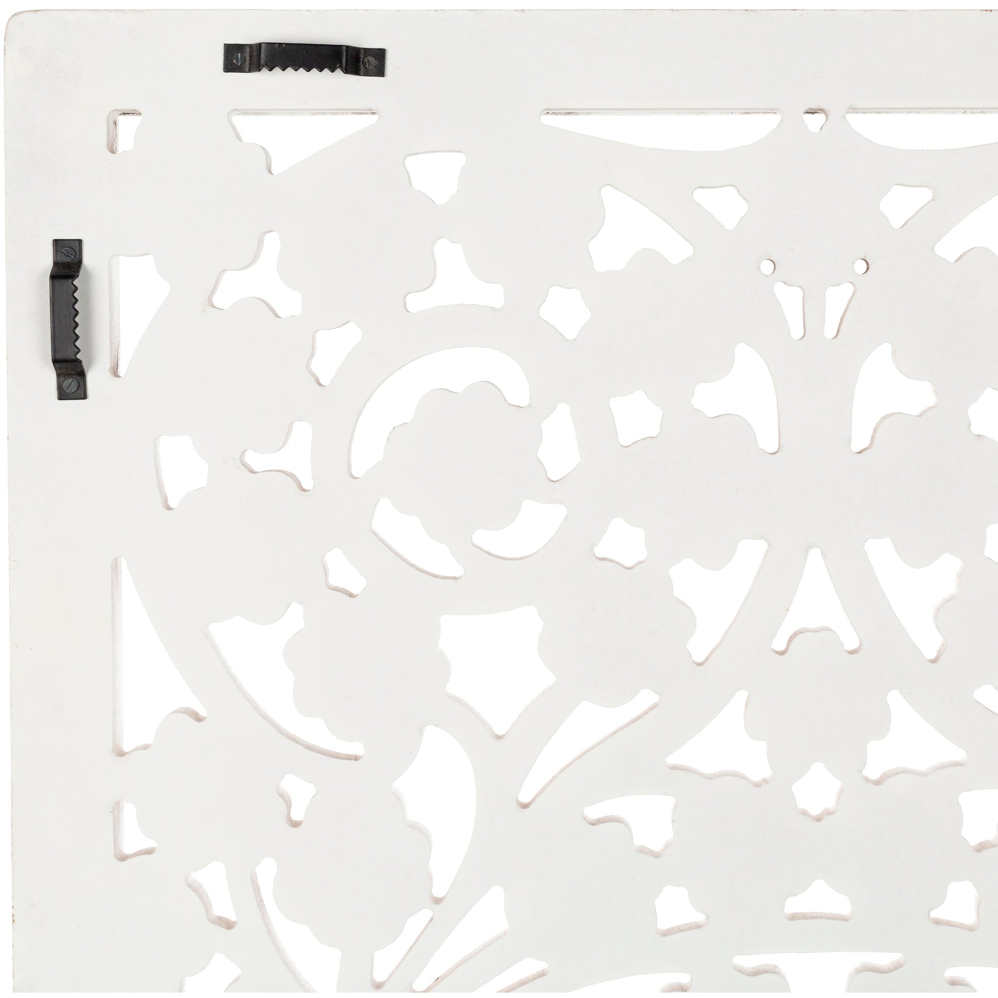 Porta un tocco di stile internazionale nella tua casa con questo pannello murale di straordinaria bellezza. Ogni pannello è intagliato a mano con dettagli elaborati e impreziosito dalla tradizionale arte indiana della lavorazione degli specchi. La finitura bianca anticata aggiunge un tocco contemporaneo e versatile. Adatto a uno spazio di rappresentanza, questo pannello può essere appeso verticalmente o orizzontalmente.