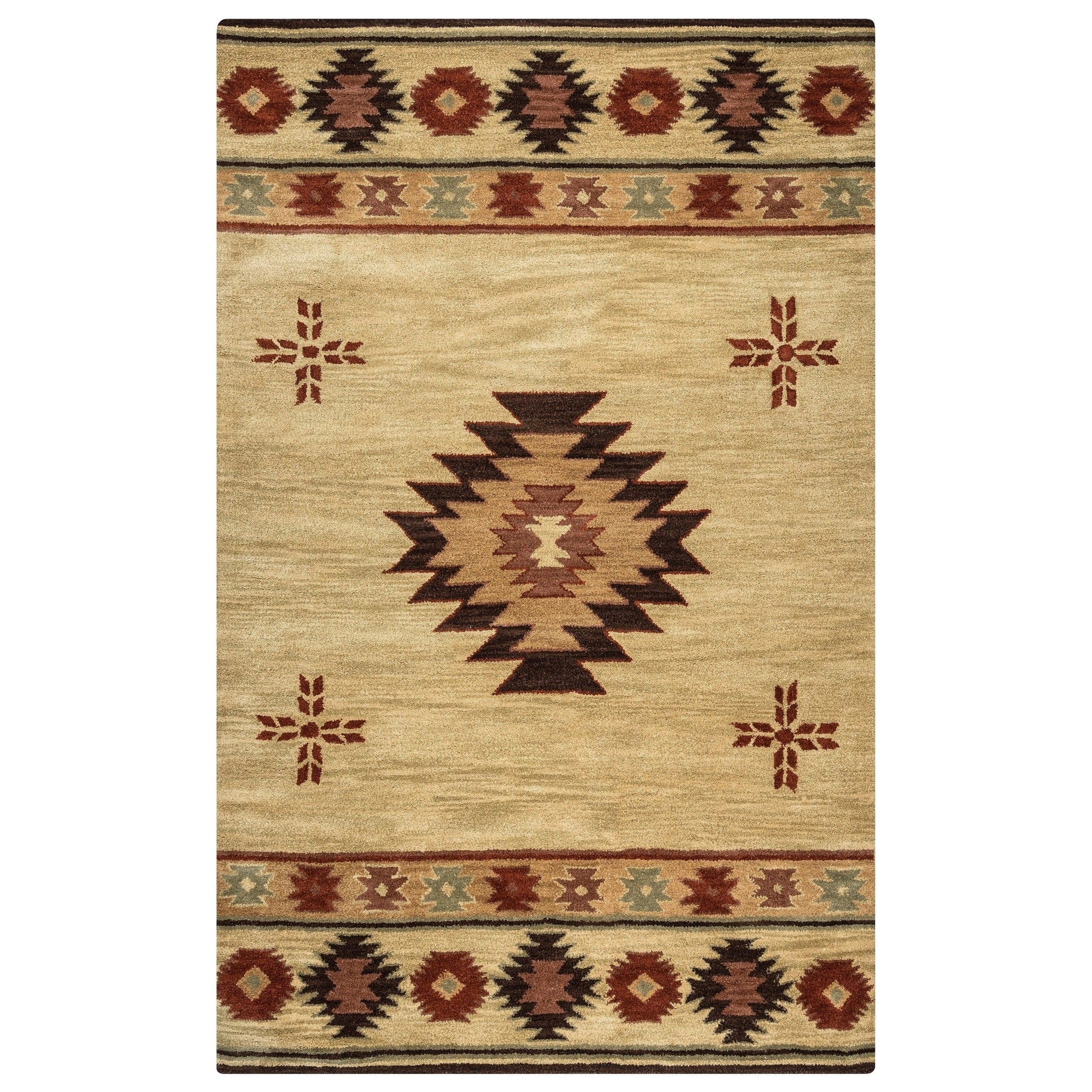 Aggiungi un tocco di eleganza nativa americana al tuo arredamento con il tappeto in lana Ryder Southwestern di Alora Decor, realizzato a mano. Caratterizzato da un elegante motivo in stile Southwestern e lodge, questo grazioso tappeto è disponibile in tre splendidi colori che daranno vita a qualsiasi spazio. Realizzato a mano con lana al 100% e bordi rifiniti, questo tappeto è progettato per durare a lungo. Perfetto per l'uso in interni, ha un'altezza del pelo di 1,5 cm e presenta un retro in cotone e tela con lattice.